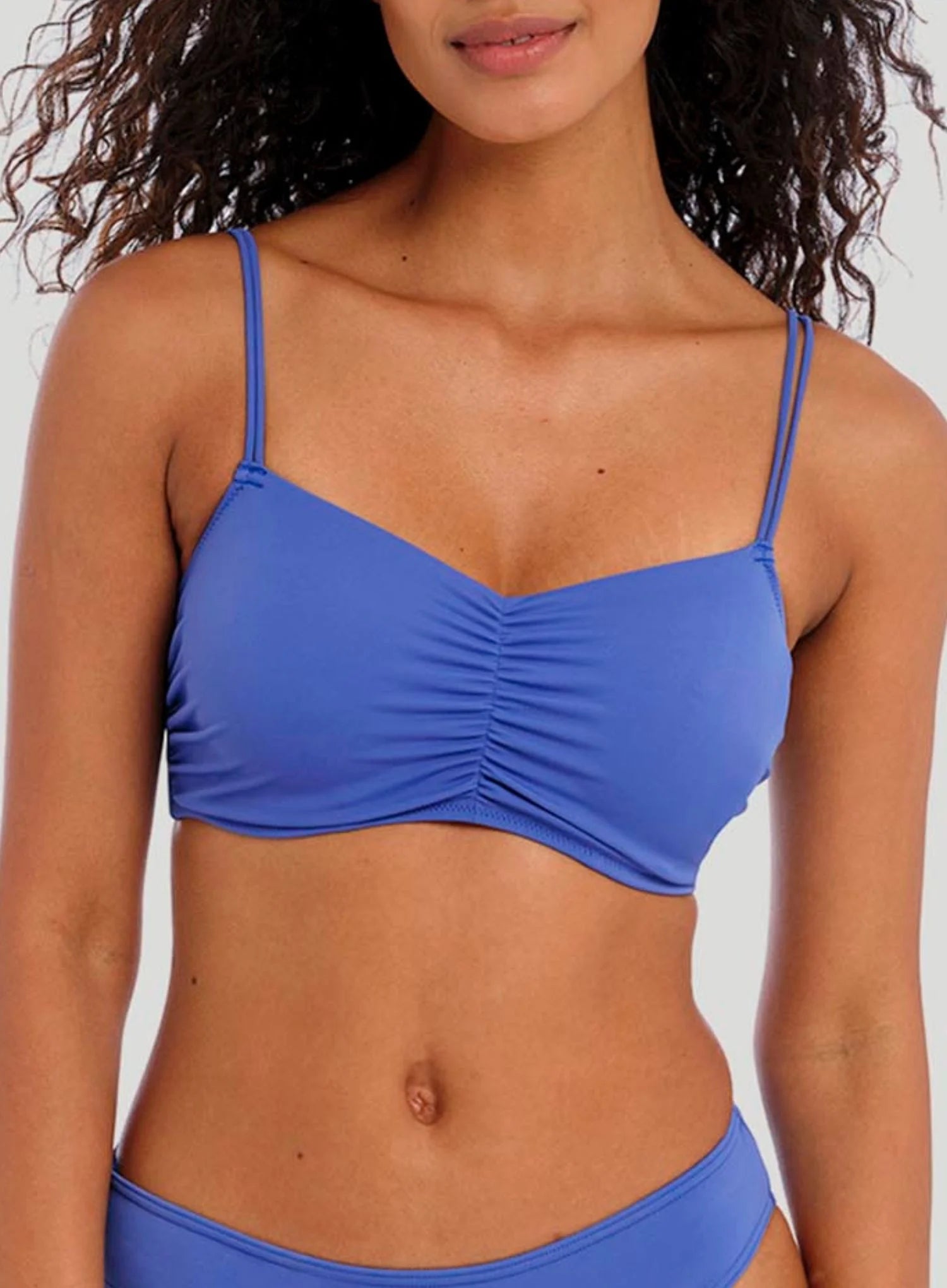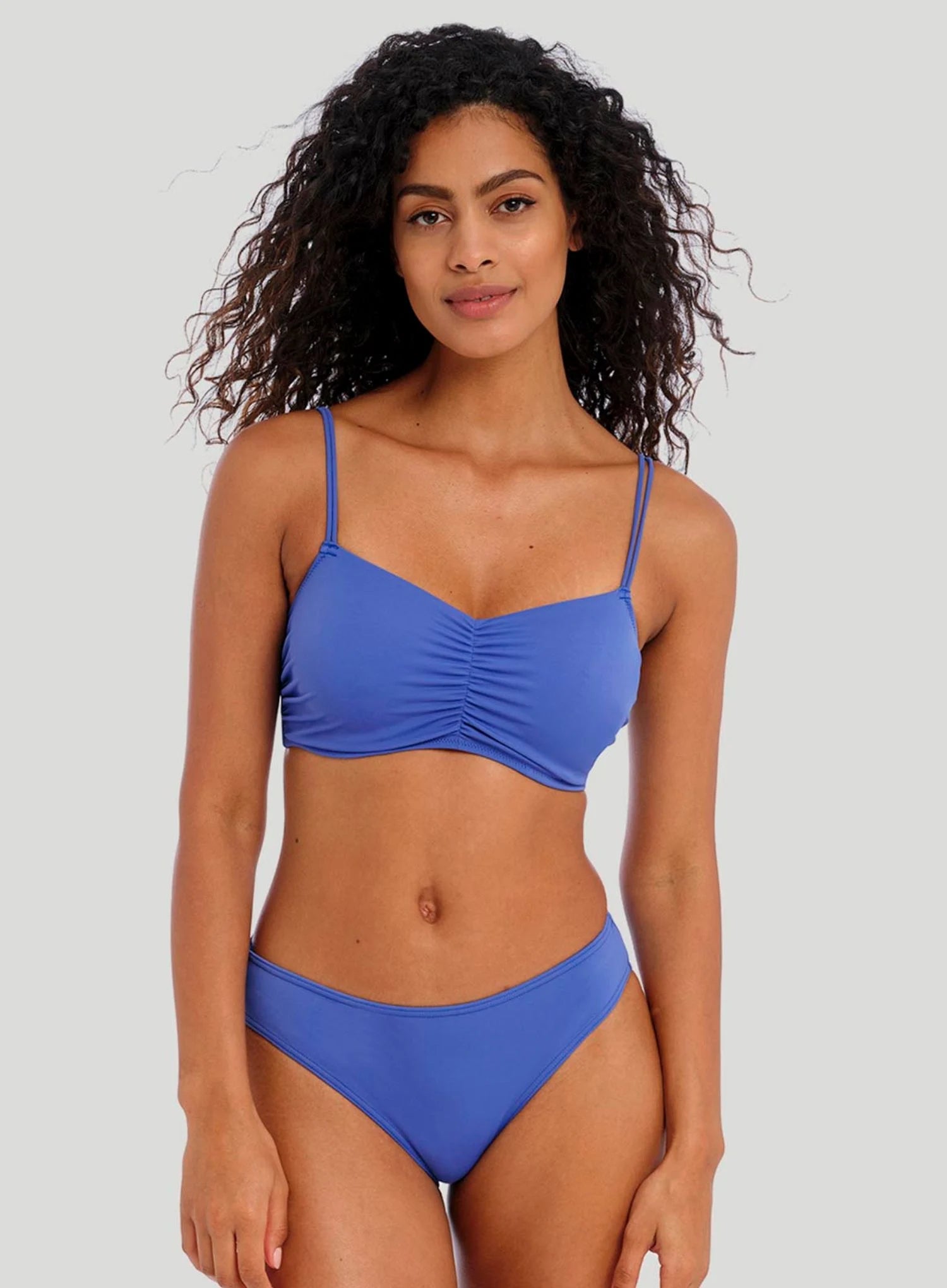 FREYA SWIM Jewel Cove Bralette Bikini Top is back at DeBra’s in this striking shade of blue, Azure. This classic Freya Swim collection remains a DeBra’s best seller, with so many styles to choose from, long-lasting comfort and the ultimate fit with no bagging or sagging. With a concealed underwire, lined cups and flattering front gathers, this top gives all the same Freya Swim support and shape in the form of a lighter look. All that’s left is to choose your matching brief style and soak up some well-deserved sun.
