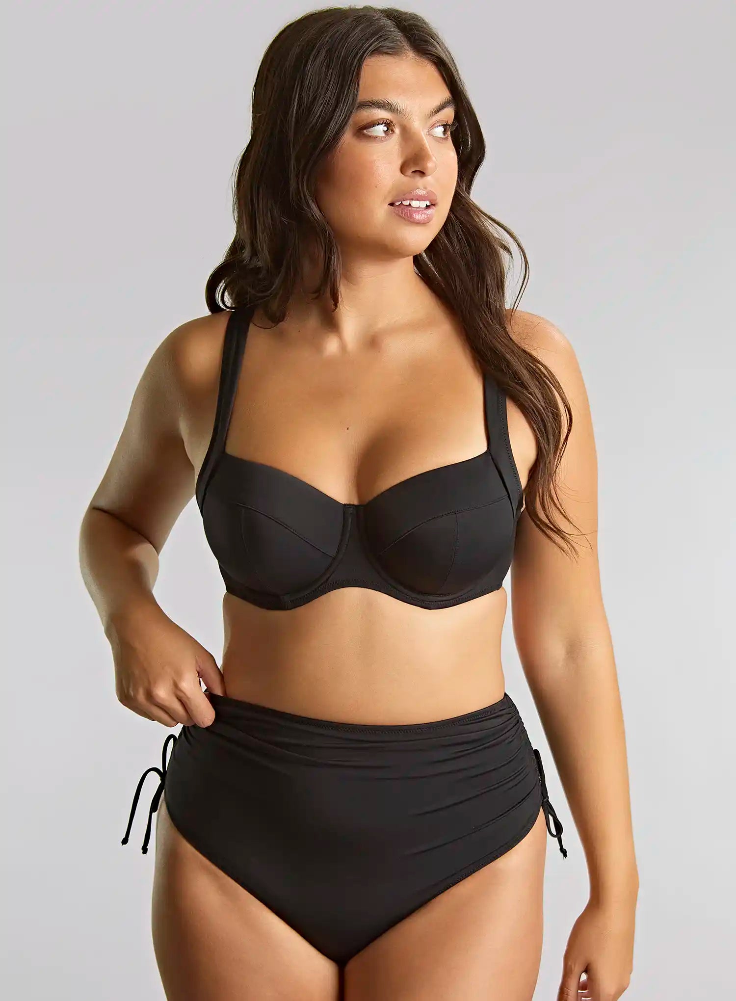 PANACHE SWIMWEAR Signature Olivia Full Cup Bikini Top in Black offers exceptional support and comfort without compromising on style. Designed with a full cup shape to fit up to a K cup, it’s the perfect choice for fuller busts seeking secure swimwear with a naturally flattering fit.