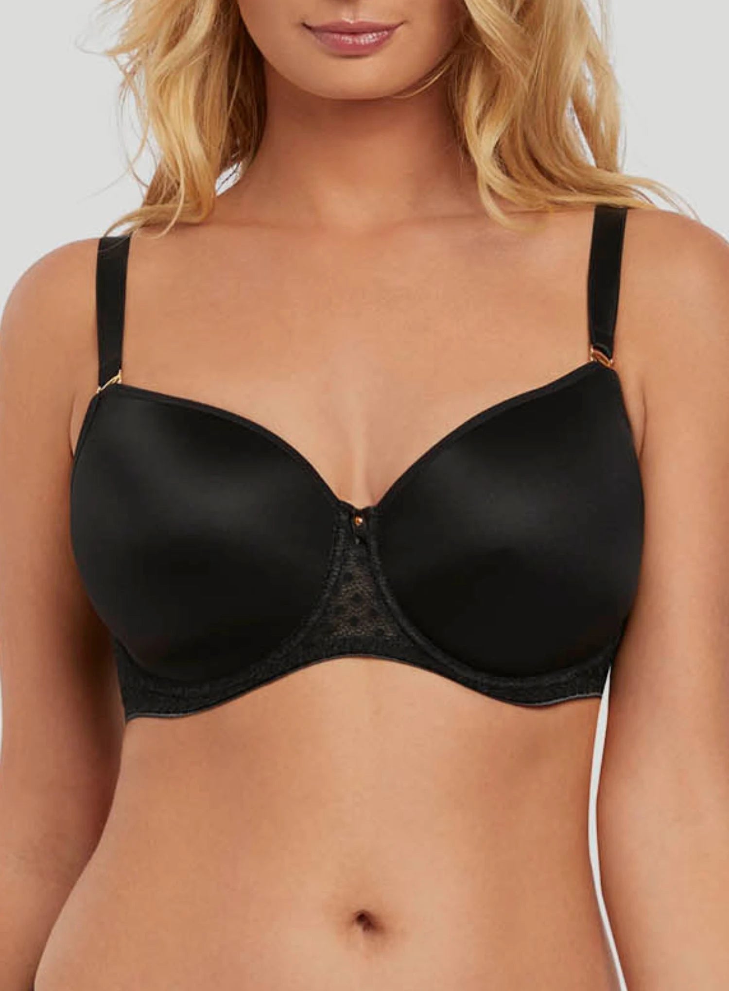 FREYA Starlight Idol Moulded Bra is based on Idol, one of our all-time best -selling T shirt bras. Starlight offers the most beautifully rounded silhouette and slight lift, according to our fitters. Created from a sweet stretch lace and moulding with a fun and fresh spot design, this bra is a must have look. The balcony cups offer good coverage and create a natural rounded shape whilst the fixed fully adjustable straps prevent strap slippage.