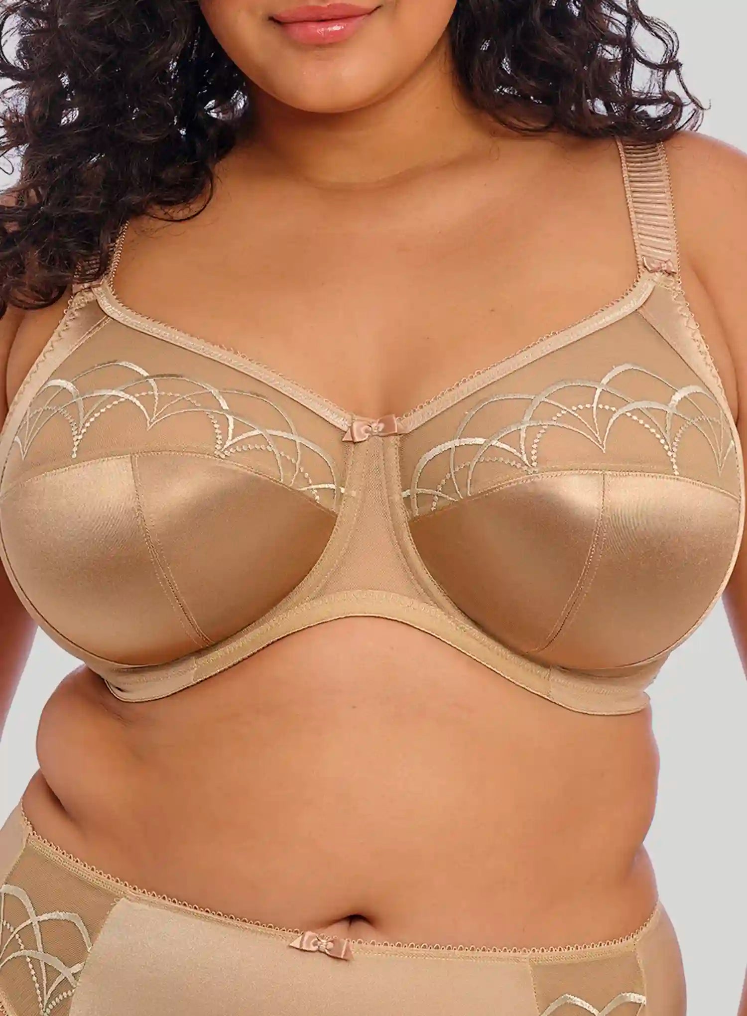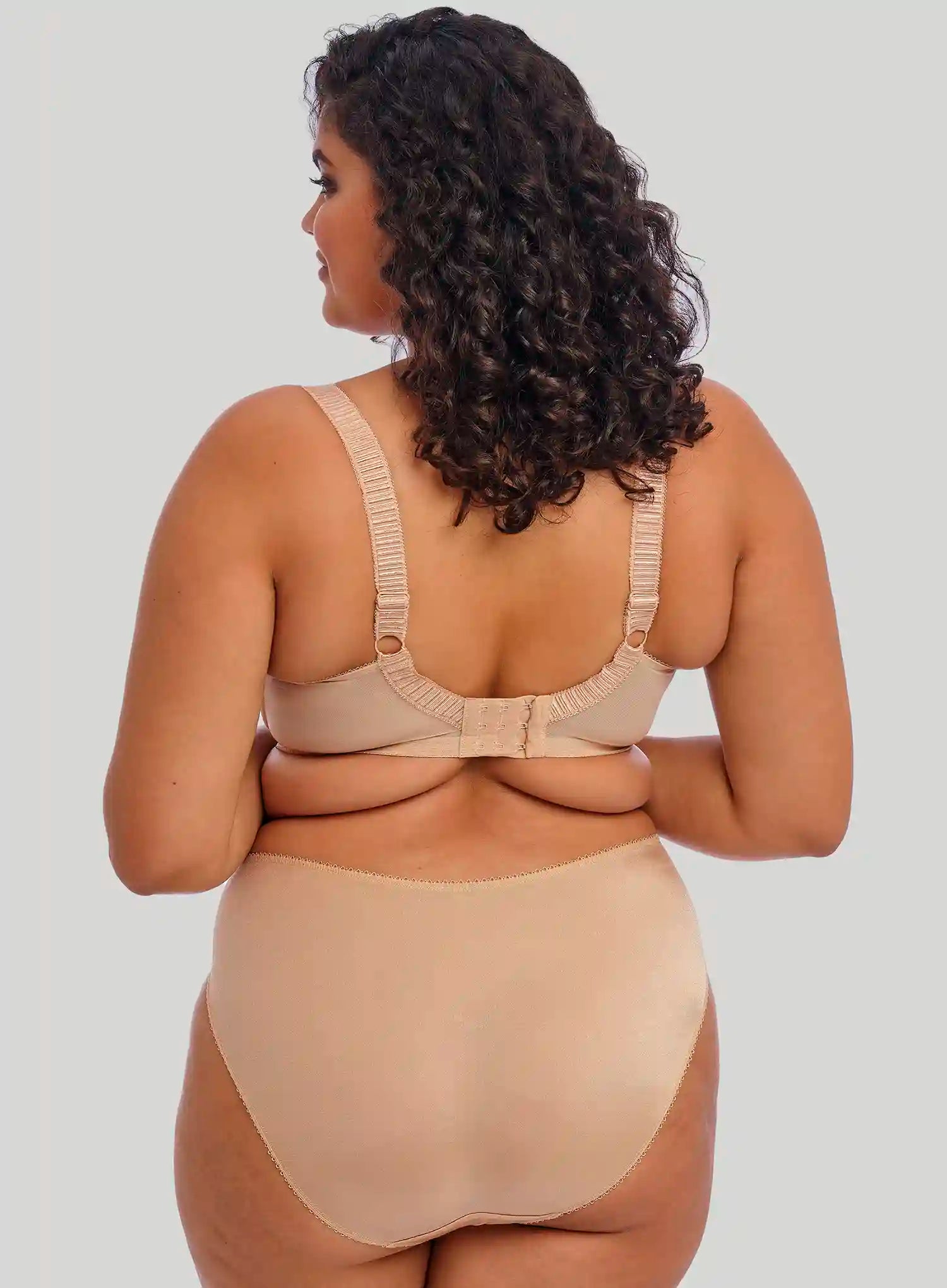 ELOMI Cate UW Full Cup Bra is part of a series you can always count on. Cate has become a go-to bra for those ladies who have had trouble in the past finding a bra to sit flush against the centre of their chest. The deeper cups allow the breasts to be fully encapsulated, ensuring the bra sits firmly against the body. This combined with the added side support, creates a flattering, forward bust projection. The design features straps set closer to the centre, which reduces the chances of slippage off the shoulders.
