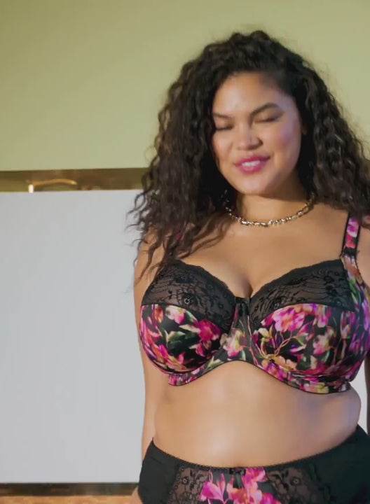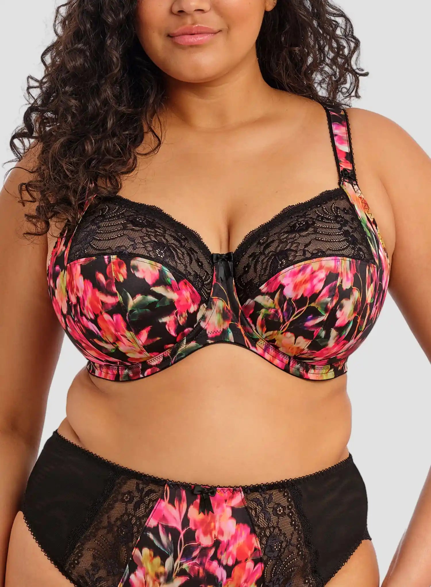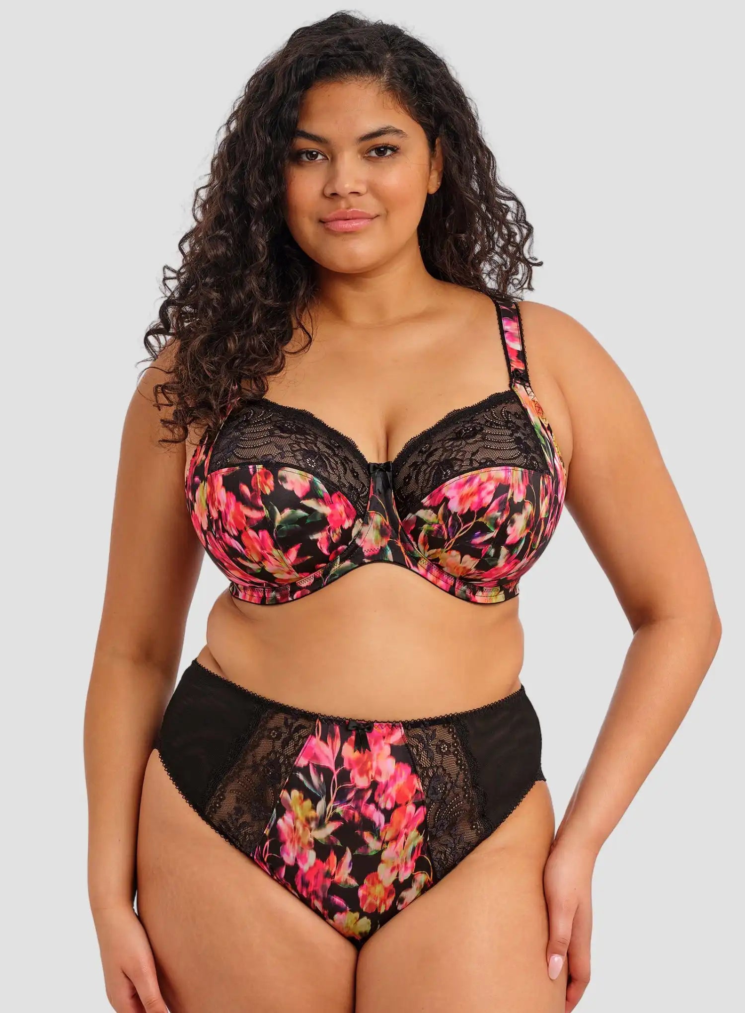 ELOMI Morgan Underwired Banded Bra in Hot House brings bold summer energy with trusted support. The vibrant blurred botanical print feels playful and confident, while Morgan’s signature shape offers lift and forward projection for a flattering silhouette. Stretch lace through the top cup allows for a flexible, comfortable fit that adapts to your shape, making it easy to wear from day to night.