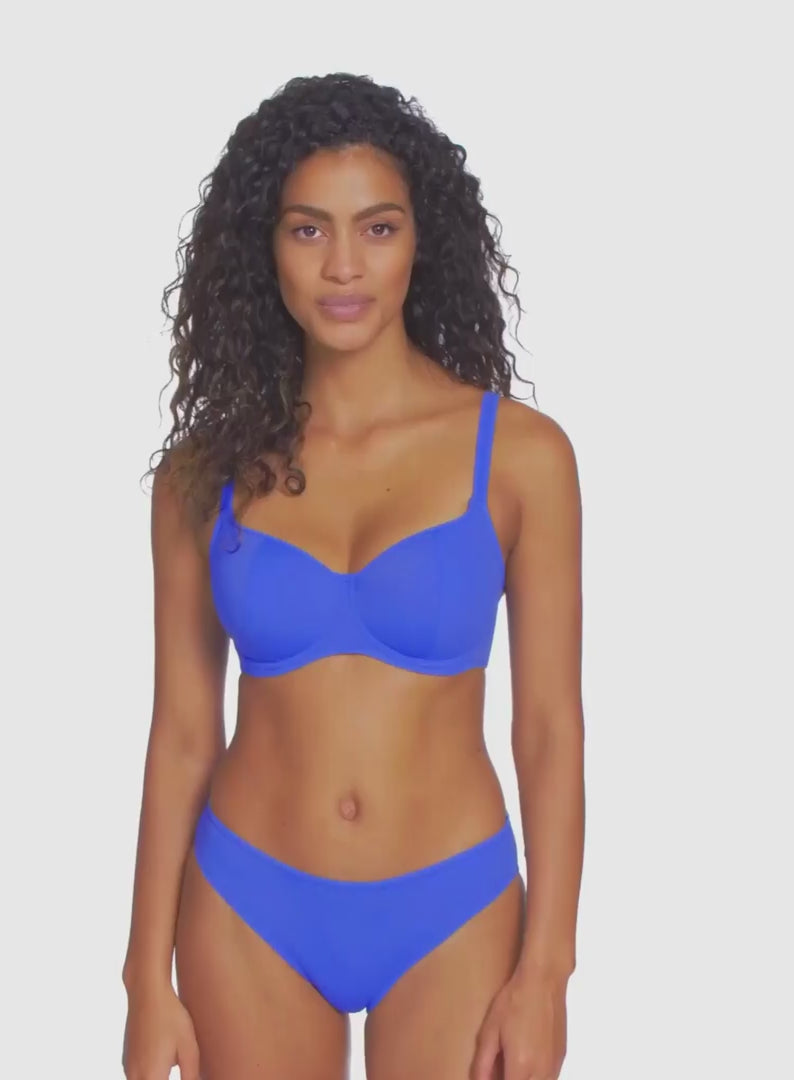 FREYA SWIM Jewel Cove Underwired Sweetheart Padded Bikini Top is back in this striking shade of blue, Azure. This classic collection remains a best seller at DeBra’s, with so many styles to choose from, long-lasting comfort and the ultimate fit and shape with no bagging or sagging. Lightly padded foam cups offer support, smooth rounded shape and stunning enhanced cleavage. All that’s left is to wear it and soak up some well-deserved sun.