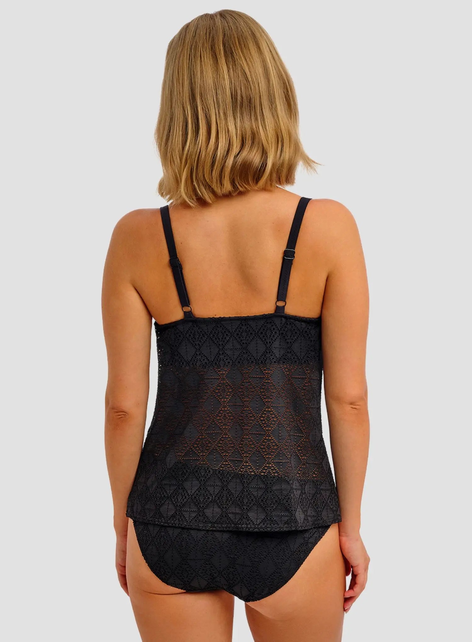 FREYA SWIMWEAR Nomad Nights Underwired Plunge Tankini Top in Black is part of the new collection designed to offer something for every Freya girl. This soon to be staple in your swimwear wardrobe features lightly padded foam cups and a plunge neckline to provide the perfect amount of support and shape while enhancing cleavage for a stunning silhouette. Finished with a crochet overlay for a stylish touch, the mid-section remains unlined for a lighter look. Get ready to complete your summer wardrobe with Nomad Nights.