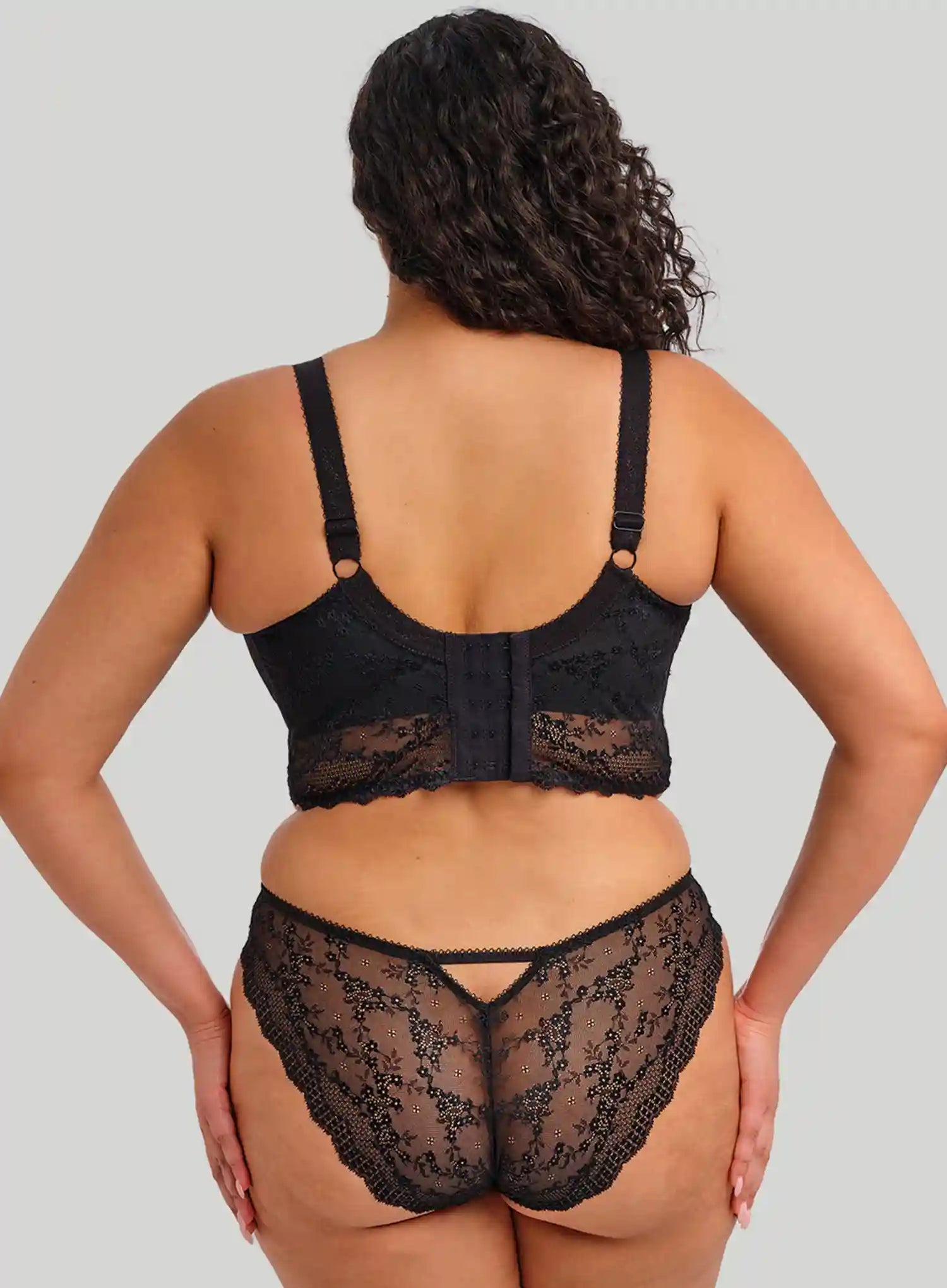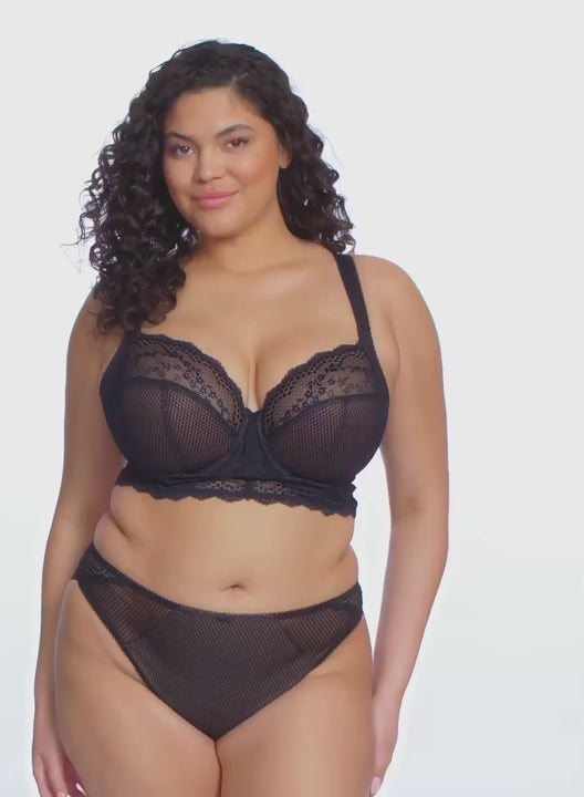 ELOMI CHARLEY Underwired Plunge Longline Bra Black blends light diamond mesh, stretch lace, and sophisticated embroidery to create a bra that feels as good as it looks. The Charley collection is a firm DeBra's favourite, designed for women who want to feel sexy, supported, and comfortable all day or night. This Black shade is now a permanent addition to the collection.