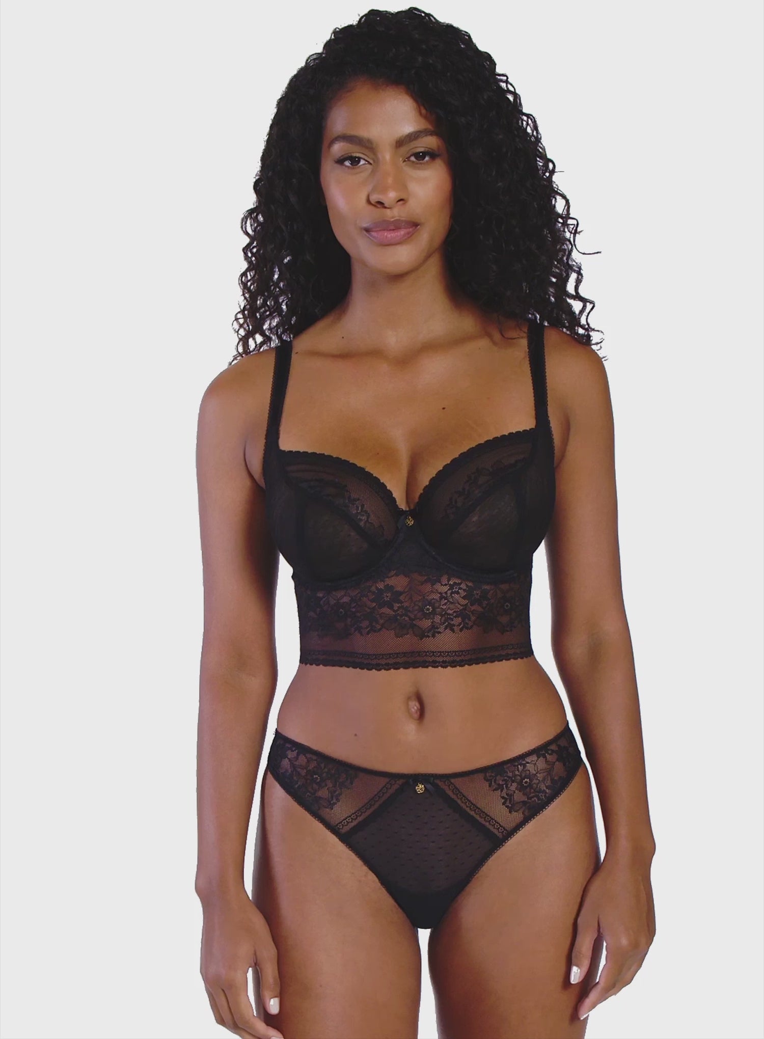 FREYA Sydnie Underwired Longline Bra Black is part of our hottest drop of the season. This seductive longline look is based on the classic Freya underwire plunge, including great side support, rounded shape and plunge without push up. Functional as it is fashionable, this shape is perfect under your plunging necklines, also featuring adjustable straps to prevent slippage. Pretty stretch floral lace adorns the body, making for the perfect under or daring outer wear look. Sydnie has us excited for this warmer weather – how about you?