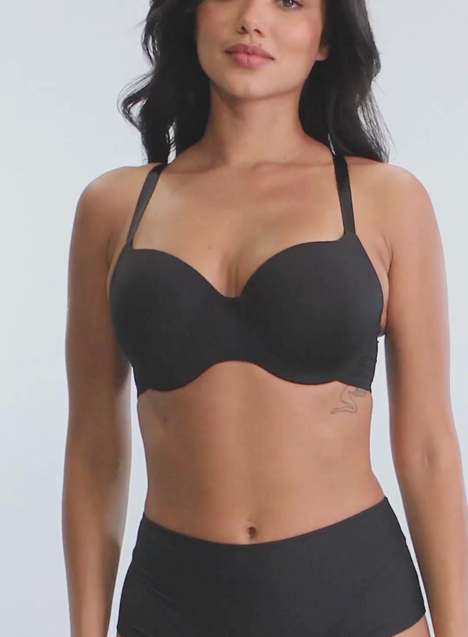 PANACHE 365 Smooth T Shirt Bra Black is your ultimate everyday essential. By your side 365, this sleek t-shirt bra offers a perfectly smooth, seam-free finish under any outfit, with lightly foam-lined moulded cups that enhance your natural shape. The medium coverage balconette design provides a flattering lift, while the swan hooks allow for versatile styling with straight or crossed straps. Crafted from soft, recycled fabric, it’s not just kind to your skin but also to the planet. Now available in classic Black, yellow-toned nude ‘Honey’ and pink-toned nude ‘Lipstick’ it’s the bra you’ll reach for, whether dressing up or down. The first thing you slip into in the morning and the last thing you take off at night should give you all day comfort and reassuring support – and 365 does just that. Stay supported and confident all day, every day, 365 days a year.