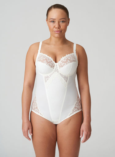 PRIMADONNA Deauville Bodysuit in Natural has the same bra that you have come to know and love built into a luxurious shaping bodysuit. Featuring embroidery along the top of the cups, straps, leg line and on the front section of the body suit, this is a luxurious design. Its three-piece underwire bra ensures great lift and support while the mid-section of the bodysuit controls shape and smooths lines along the tummy area. This timeless bodysuit is great underneath clothing and is an essential addition to your lingerie wardrobe.