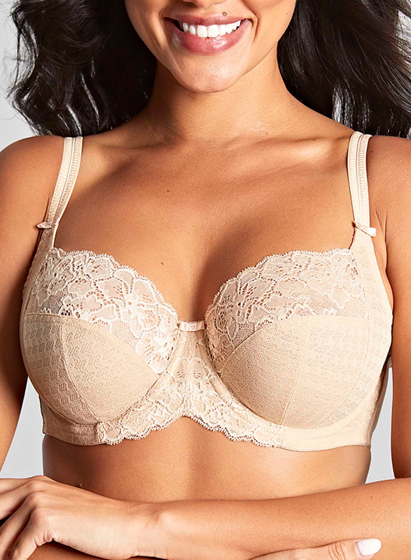 PANACHE Envy Full Cup Bra in Chai is an iconic style and one of DeBra’s best sellers for our D cup and up ladies. 4-piece stretch lace top cups and laminated bottom cups makes this one of the most supportive and forgiving styles our fitters have seen. This design will give you a beautiful rounded shape and forward projection. Designed with all-over jacquard lace and floral lace top cups, the Envy Full Cup will never go out of style.