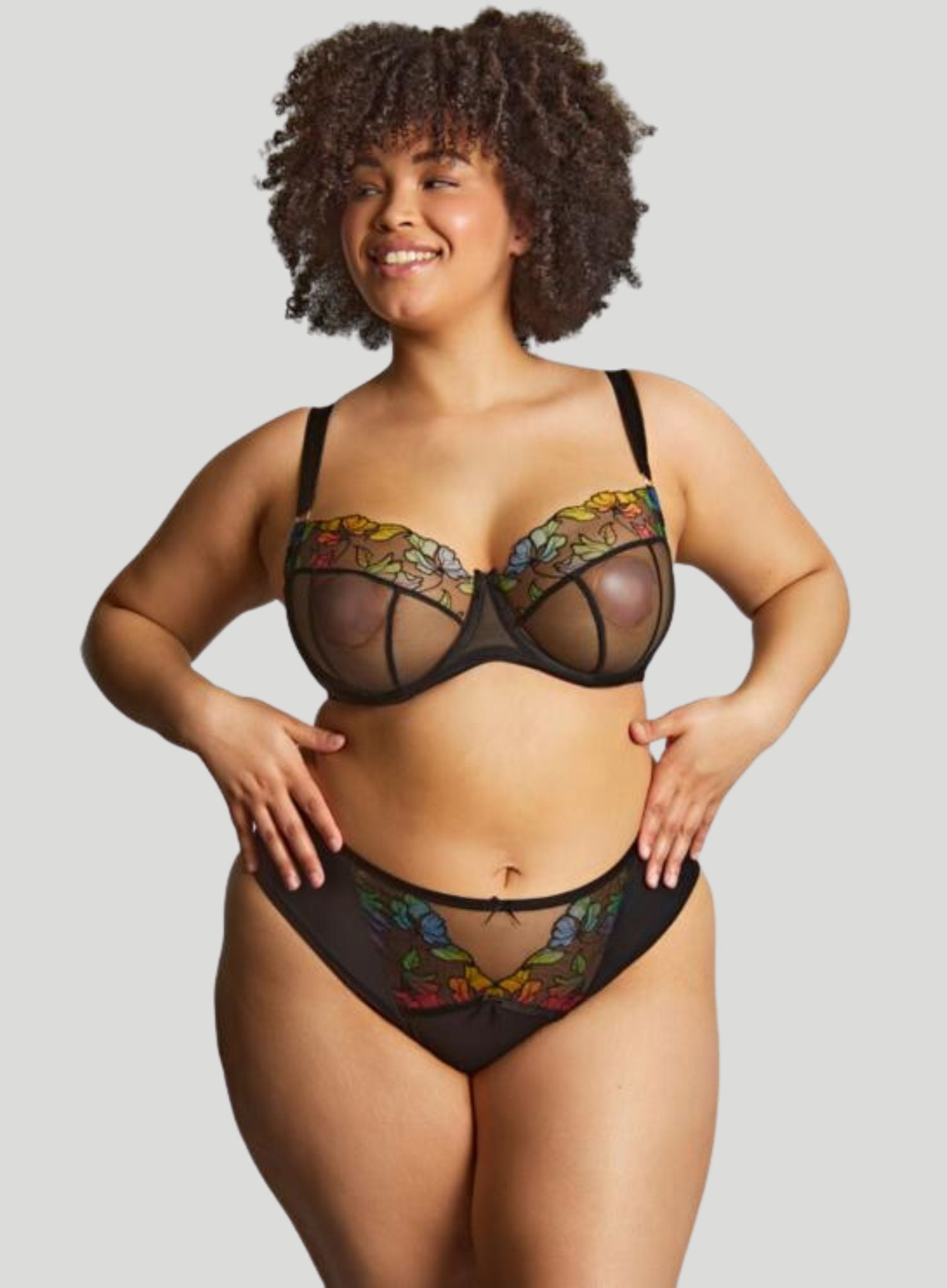 SCULPTRESSE Eden Balconette Bra in Black is a fashion-forward approach from Sculptresse, blending romantic elegance with exceptional support. This balconette bra features sheer tulle cups adorned with intricate overprinted embroidery, creating a visually stunning and feminine look. Designed for both style and support, the Eden Balconette is perfect for everyday wear or special occasions.
