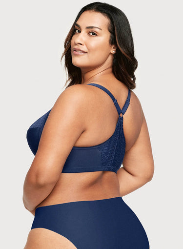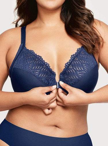 GLAMORISE Elegance Front Opening T-Back Bra – It's all in the name of this one. Take all over elegance and add all the support and comfort you could ever need, and you'll have this beautiful collection. The best straps are the ones you don't see or feel, which is where the T-Back comes in. Combined with the lift from the Wonderwire and the plunging neckline means, it's ready to pair with any look. Blue is an ongoing colour in the Elegance collection.