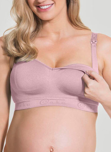 CAKE LINGERIE. Popping Candy Maternity and Nursing Bra in Pink is ideal as a sleep bra too. It is completely wire-free for a beautiful feel on the body. Can be worn pre, during and post pregnancy as well as through the night. It has adequate centre front height with a V neckline.