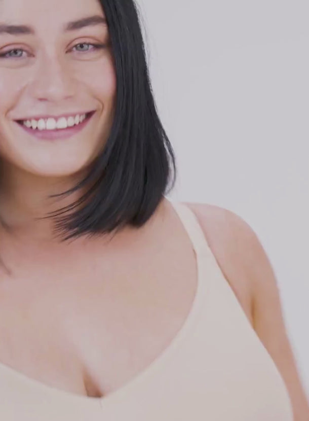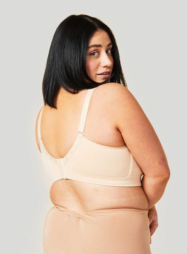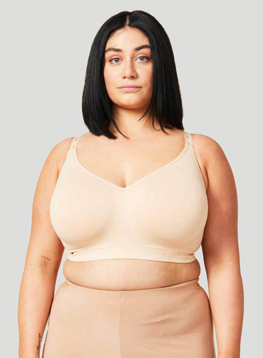 CAKE LINGERIE Sugar Candy Seamless Everyday Bra in Beige is wire-free, seam-free, supportive and ultra comfortable bra for the fuller busted lady. The sugar candy bra is not only suitable for everyday wear, but is comfortable enough to keep on throughout the night. The highly engineered, constructive support panels, offer a supportive hold and ultimate comfort. With graduated straps and bands, you'll love the security and shape that this bra has to offer.