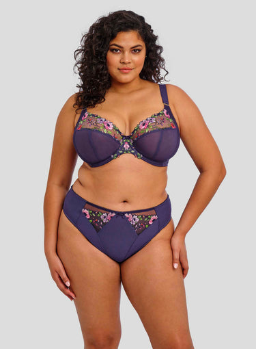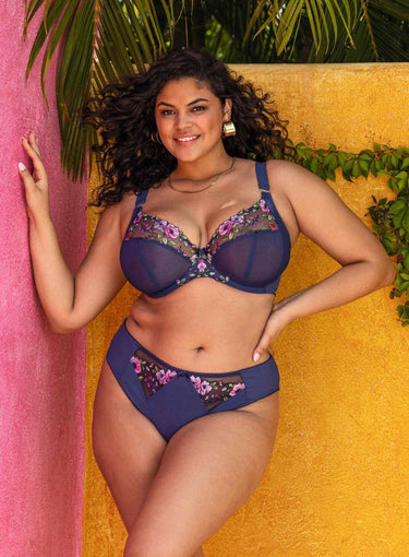 ELOMI Himari Underwired Plunge Bra in Midnight returns with a fresh energy, inspired by the vibrant hyper-tropical haven trend. Featuring precision print technology, this design creates a striking 3D effect, bringing lush tropical florals to life in all the season’s must-have hues. The dynamic palette of soft pinks and vivid greens bursts beautifully against the rich Midnight backdrop, ensuring all eyes are on you. Based on the bestselling Matilda Plunge style, Himari will be a winner for our Elomi girls that love the classic push-up effect without the excess lift. Stretched across a rich, moody base, Himari will have you channeling springtime all year round.