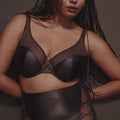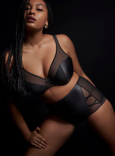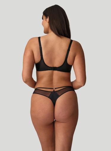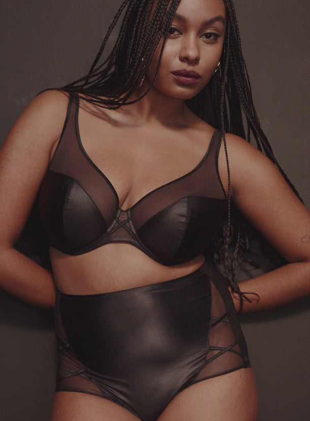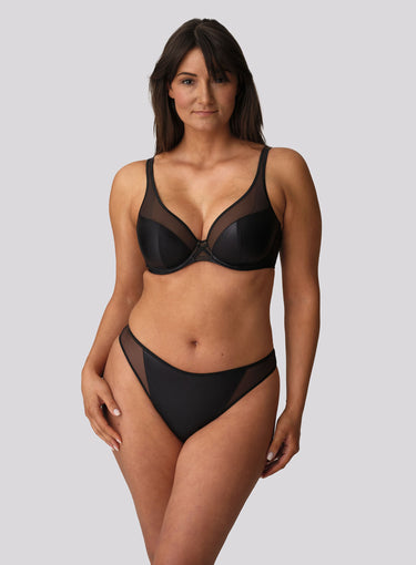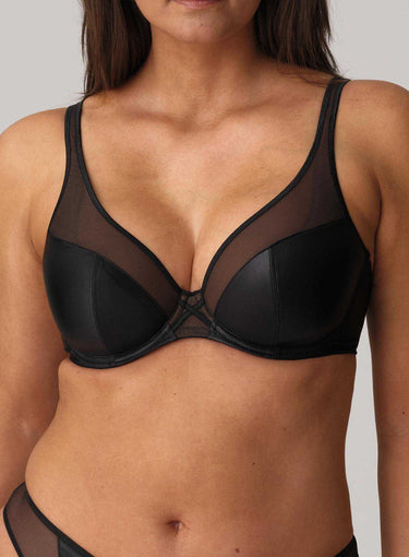 PRIMADONNA TWIST Zipolite Half Padded Plunge Bra Black is part of a playful lingerie series that harks back to Madonna’s eighties vibe: seductive with a hint of mystery and always on-trend. A mix of satin look Italian fabric with opaque tulle lends itself to a sexy yet sleek, minimal look – perfect for everyday or a special occasion. This plunge bra shape with its low-cut, padded demi-cups, is extremely flattering for all kinds of breast shapes, including women that have lost volume in the top of the cup! With Zipolite, Primadonna have translated the latest fashion trends into lingerie with a perfect fit for the fuller bust.