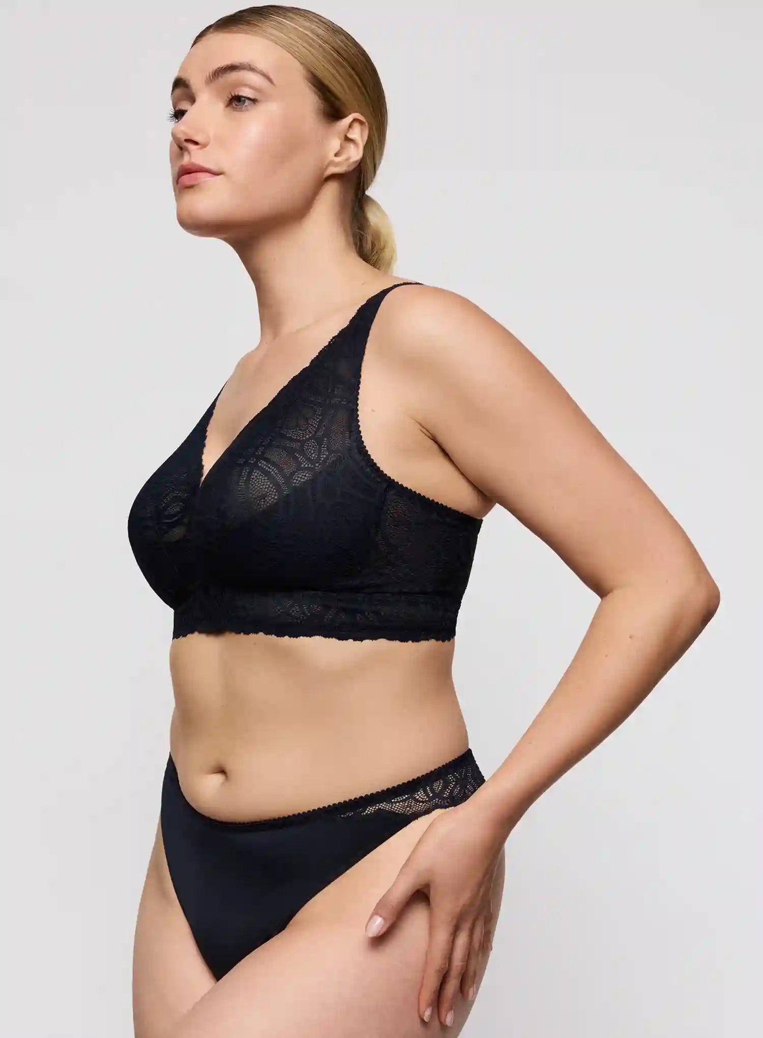 PRIMADONNA Salerno Wire-Free Bra in Midnight Blue balances comfort with elegance. Crafted on the much-loved Montara bralette shape, it offers gentle support without padding or wires. The soft longline band anchors securely, while wide lace straps bring a stylish detail you’ll happily show off.