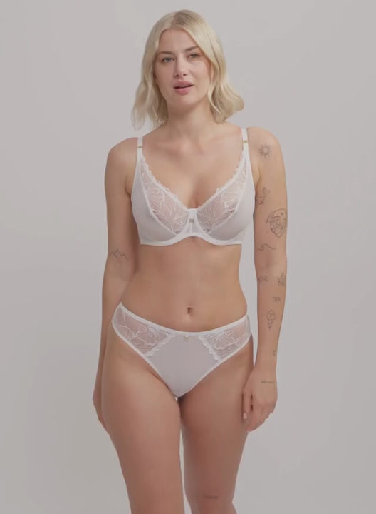 SAMANTA Harmony Soft High Apex Bra Cream combines delicate Italian craftsmanship with a modern, elevated everyday shape. The high-apex cups lift and shape naturally, creating a smooth, flattering silhouette under clothing while providing gentle support for all-day wear. Soft tulle and floral-inspired lace panels add elegance and femininity without compromising comfort.