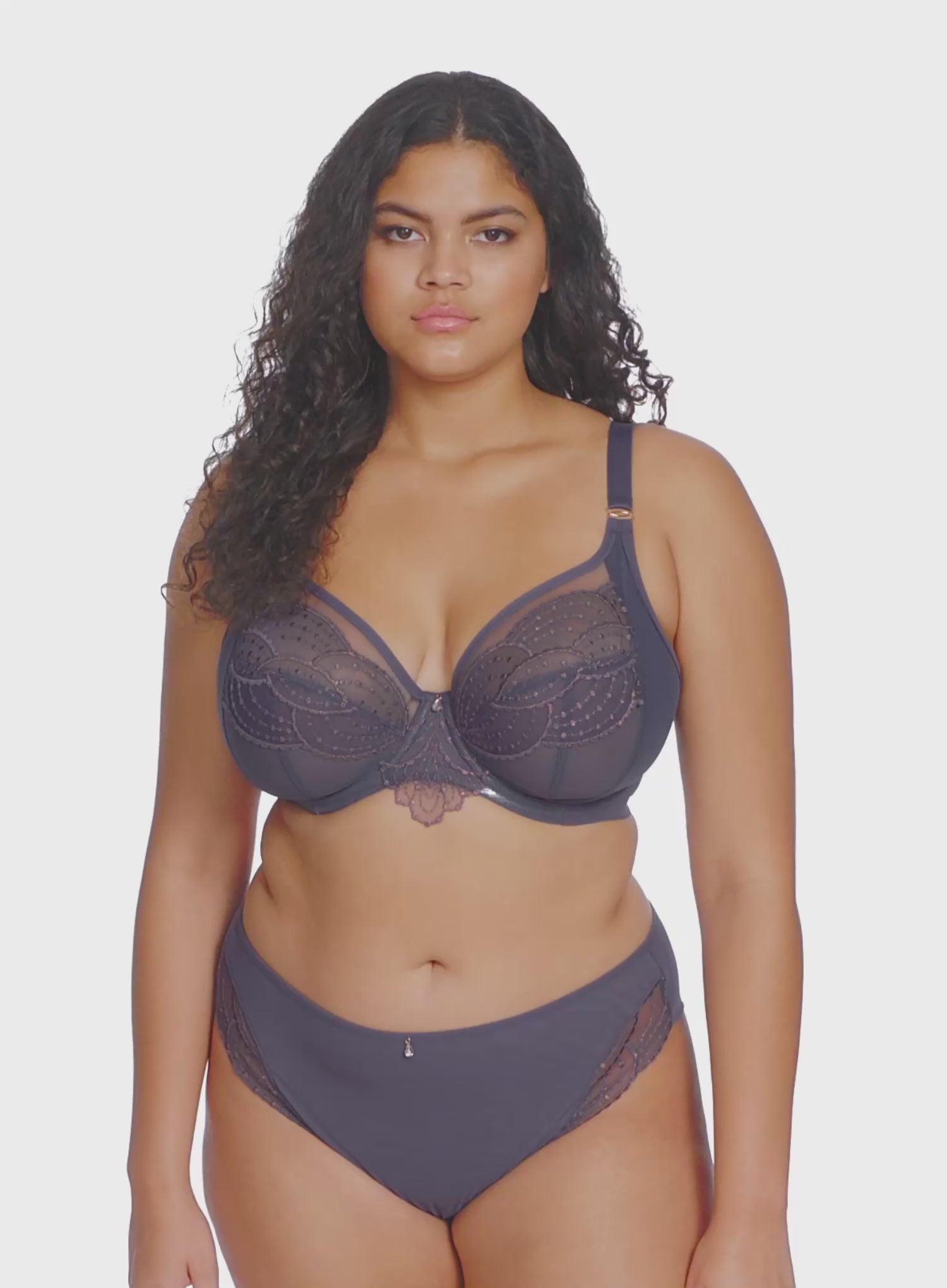 ELOMI Priya Brazilian is a treat for your lingerie drawer. The Priya collection embodies all things 1920s glamour. Draped beading and embroidery inspired by decadent chandeliers set this collection apart. DeBra's Fitting Consultants describe it as the deliciously luxurious feel brief, and the elegant Priya Brazilian is now available in a demure Storm colourway.