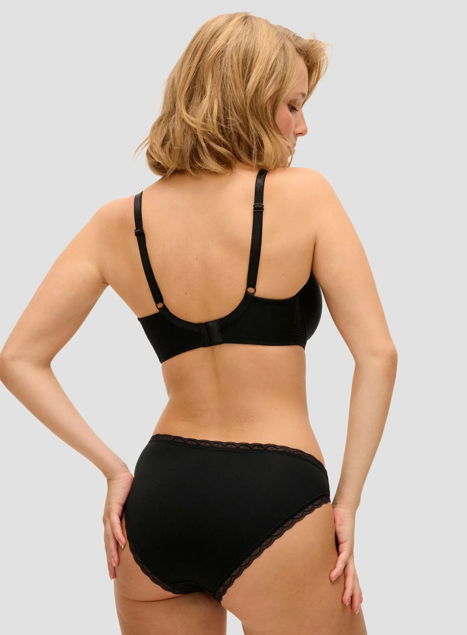 FREYA Flirt Brief in Black offers all-day comfort with a touch of elegance. Made from soft-handle fabric with delicate lace trim along the waist and legs, it hugs your curves while providing full back coverage. The low-rise fit sits smoothly under clothing, and subtle bow and signature charm details add a playful, feminine finish. Designed to coordinate perfectly with the Freya Flirt bra, this brief combines comfort, style, and confidence for everyday wear or special occasions.