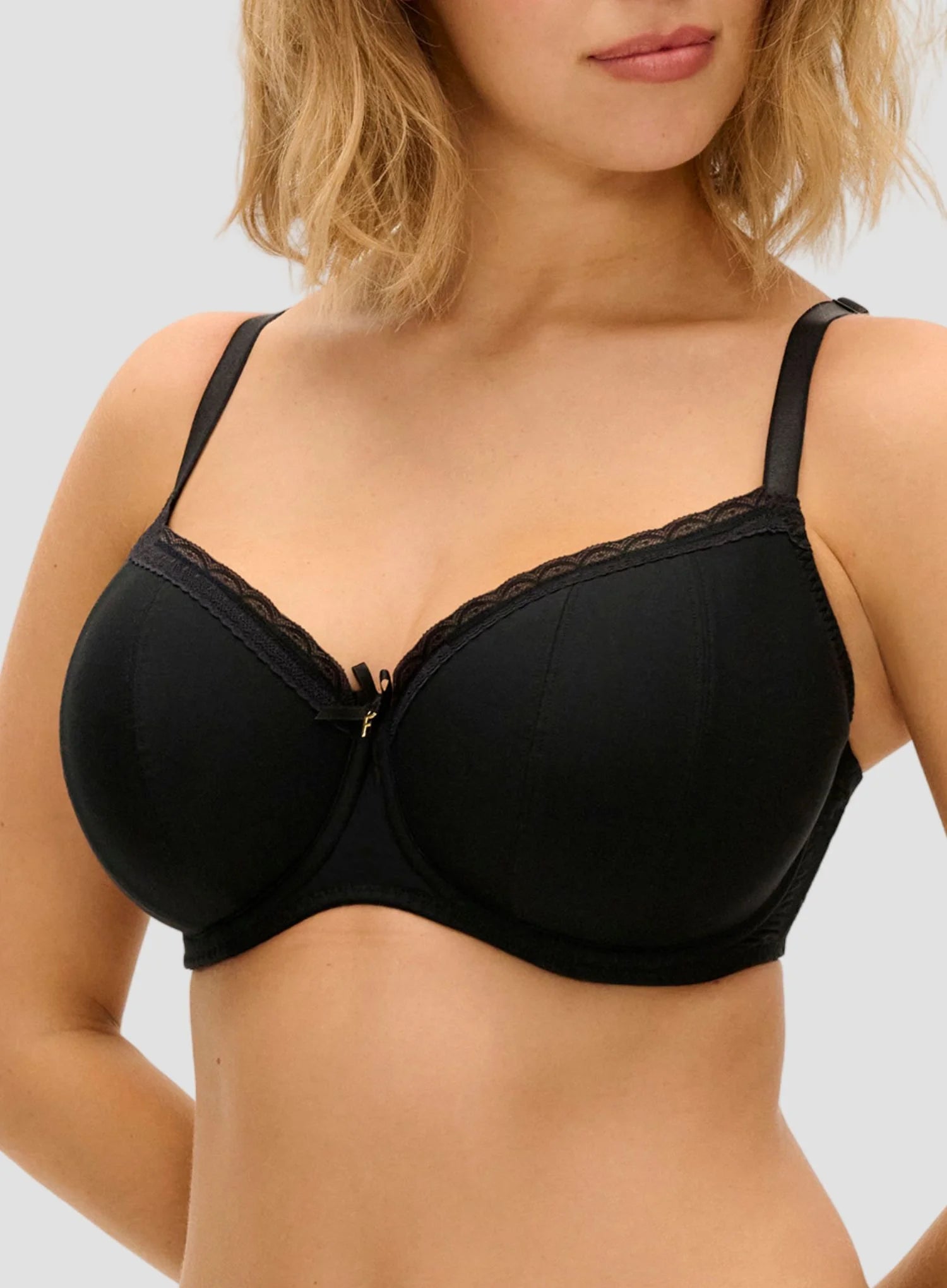 FREYA Flirt Underwired Padded Half Cup Bra in Black is a wardrobe essential that blends everyday comfort with sleek, flirty style. Soft foam cups shape and lift naturally, while the timeless black hue adds sophistication and versatility. Super-soft straps and gentle fabric keep you comfortable from morning to night, and subtle lace trim with bows and signature charm bring a touch of feminine elegance to your lingerie collection.
