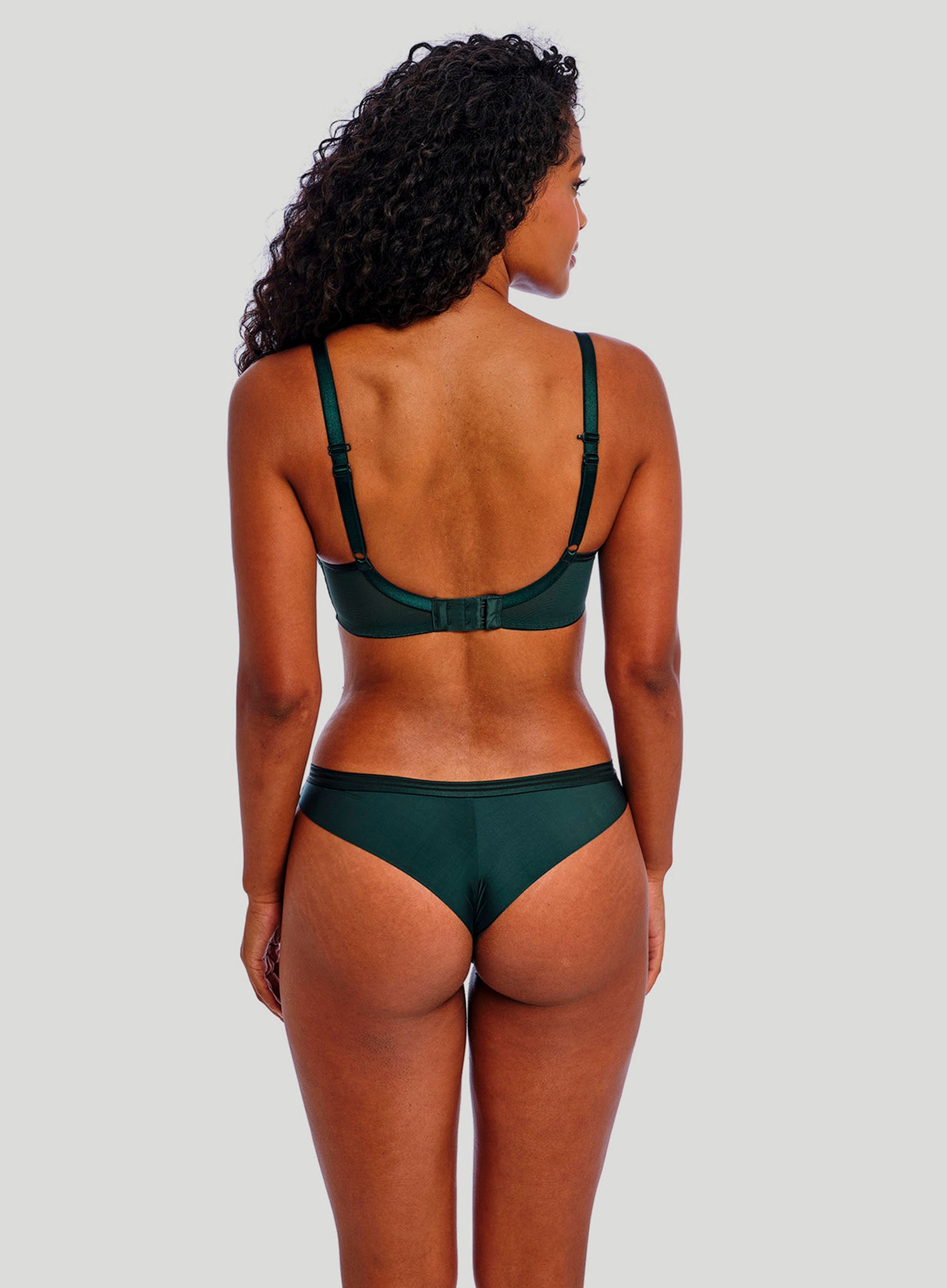 FREYA Tailored Brazilian in Deep Emerald takes this collection to a whole new level of on-trend styling. Upgrade your lingerie draw today with a sexy combination of geometric lace and Brazilian styling. The passionate deep green hue is accessorised with rose gold trims at the centre front of each garment for a tempting contrast.
