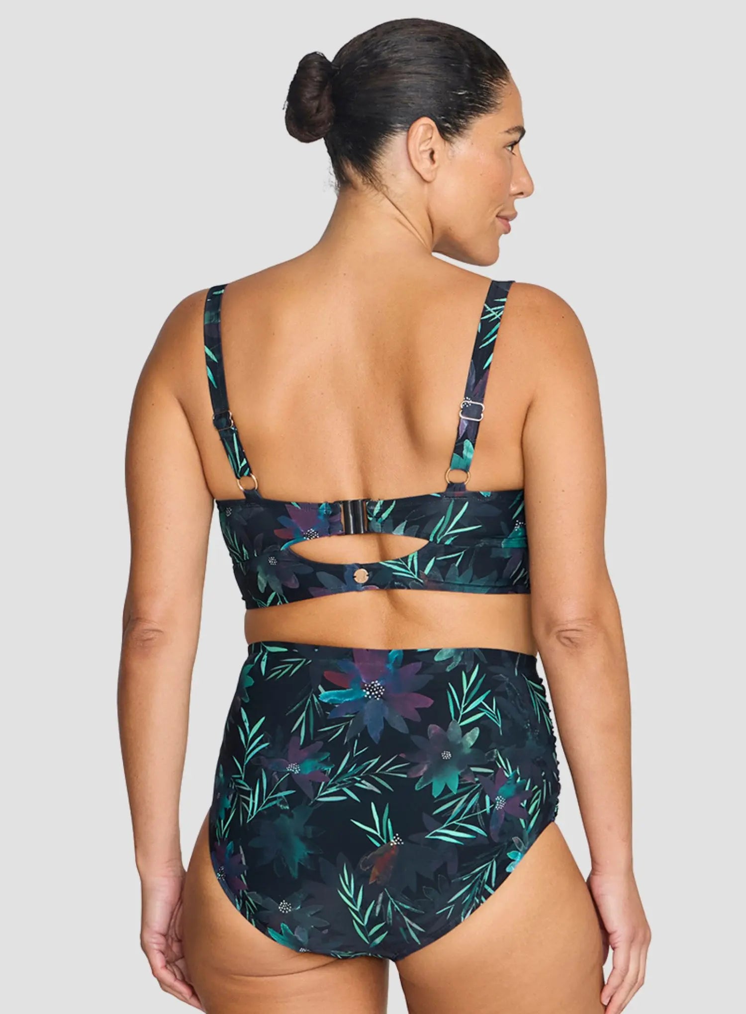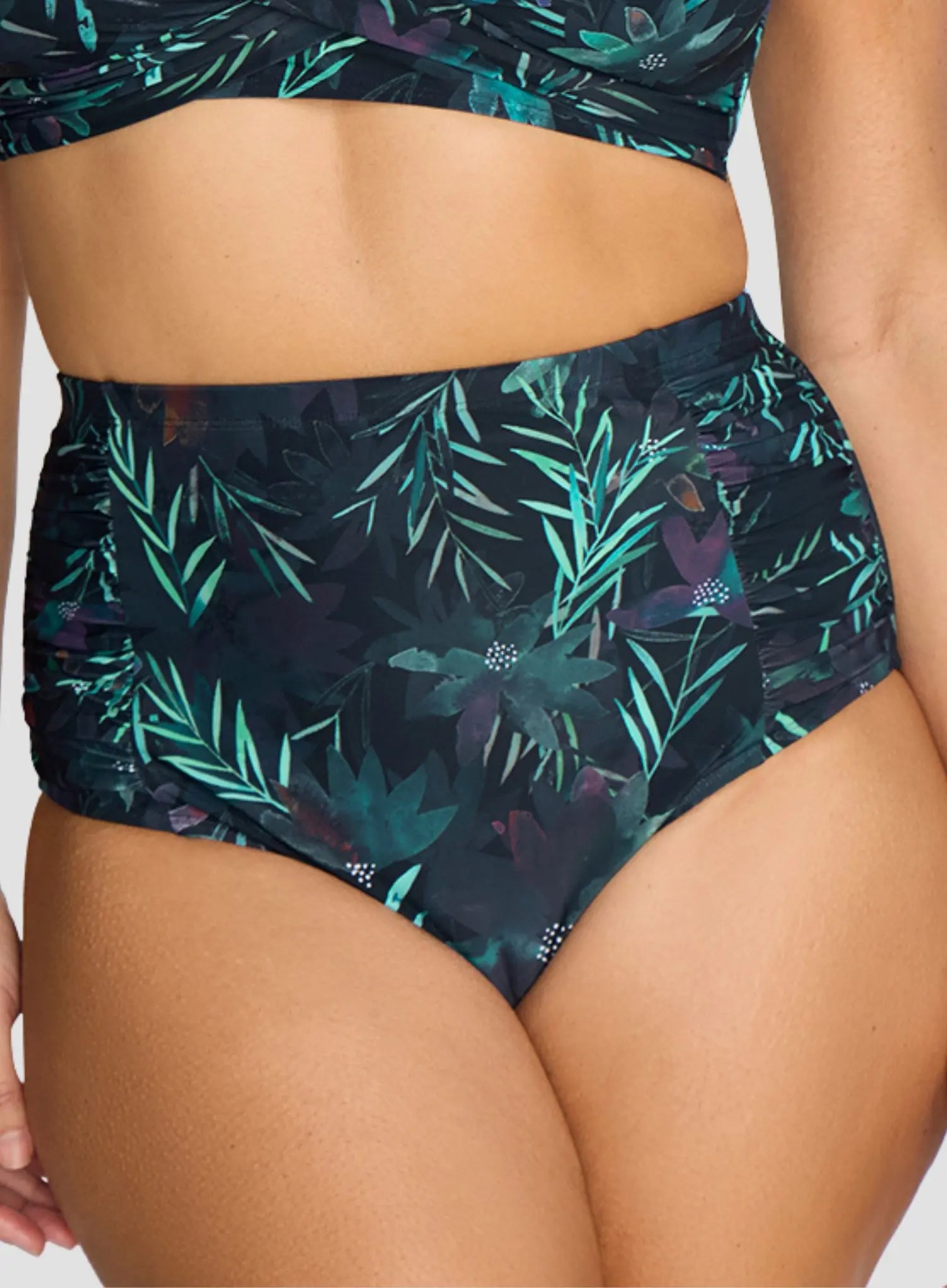 - High-waisted with moderate bottom coverage