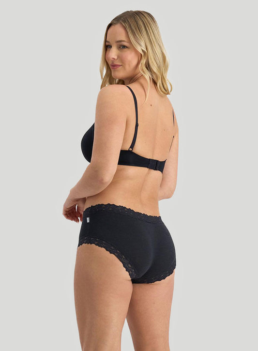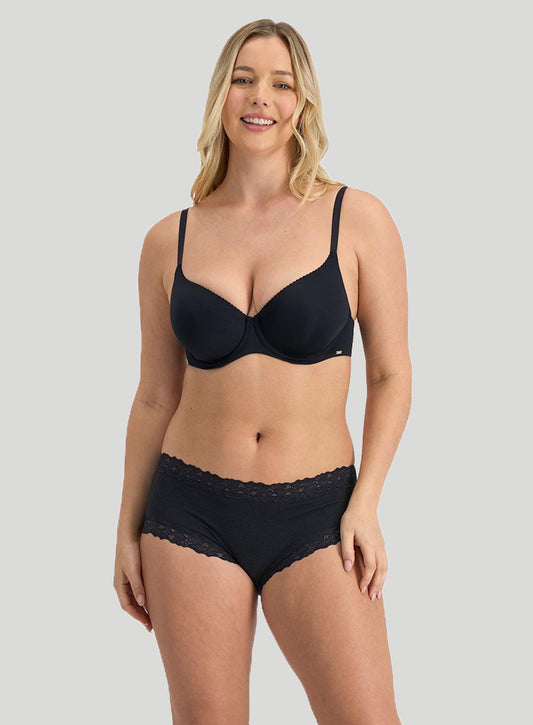 Jockey International is a third-generation family-owned company with a long history of manufacturing high-quality men’s and women’s apparel. DeBra’s is showcasing the Jockey Parisienne Bamboo Boyleg and the Parisienne Bikini Briefs, which feature French-inspired floral stretch lace and are made from feather soft Viscose Bamboo for comfort.