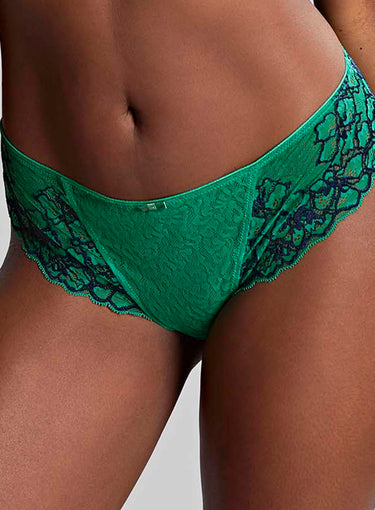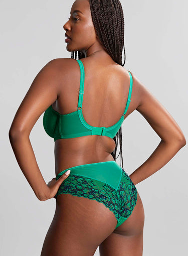 PANACHE Envy Deep Brief Emerald Leopard sees the return of a favourite brief cut for DeBra’s. Classic in design but captivating in style, this winter brings us a dazzling leopard lace and vibrant emerald shade! The Deep Brief style offers a more full coverage fit, with a higher waistline and comfortable fitting across the bottom.