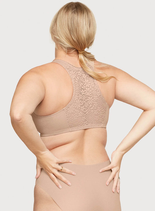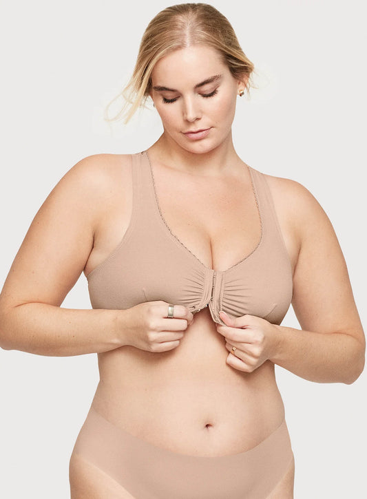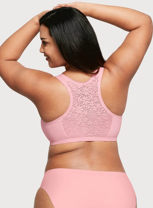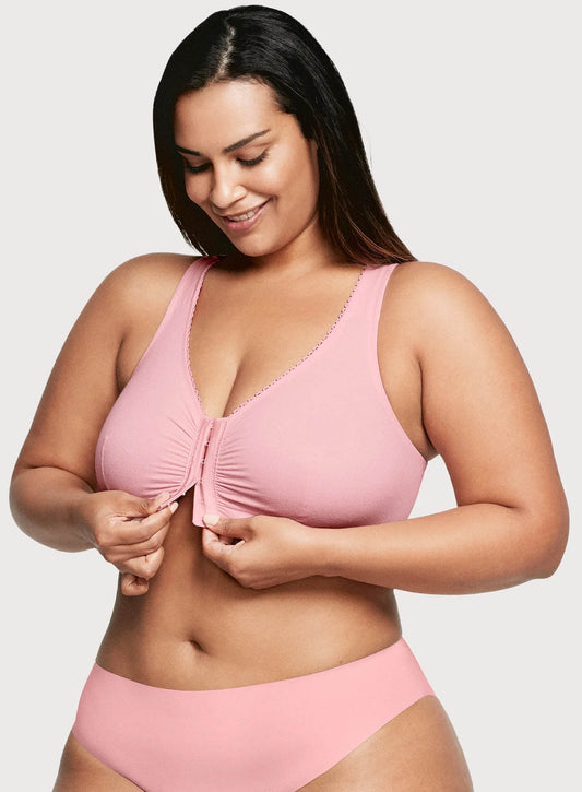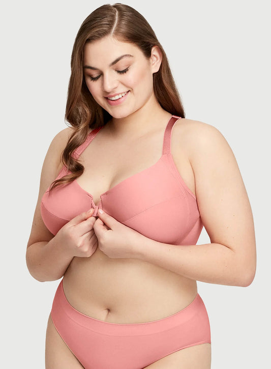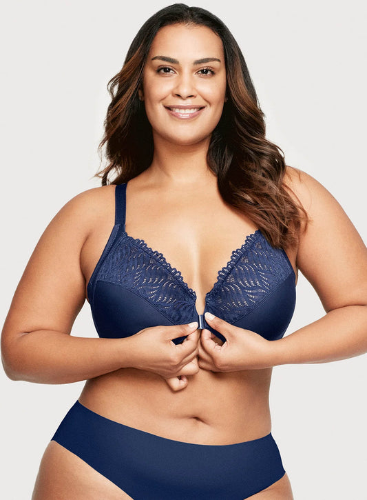 Many of our plus size front opening bra options provide flexibility and increased comfort by being completely wirefree, allowing for additional ease when putting the bra on. This is not at the expense of brilliant support, with features like firm, internal support panels that take the place of wires in providing lift and shaping.