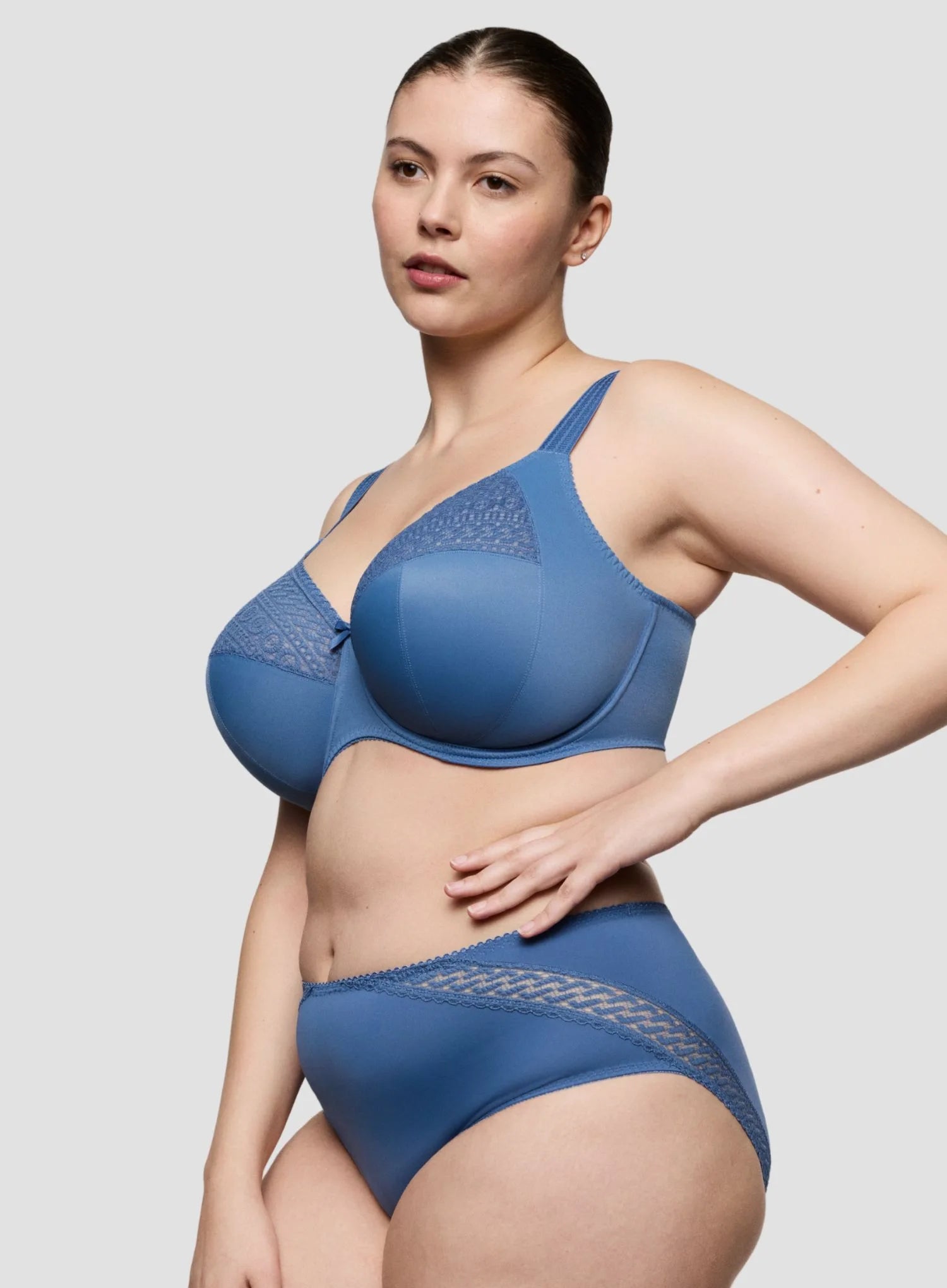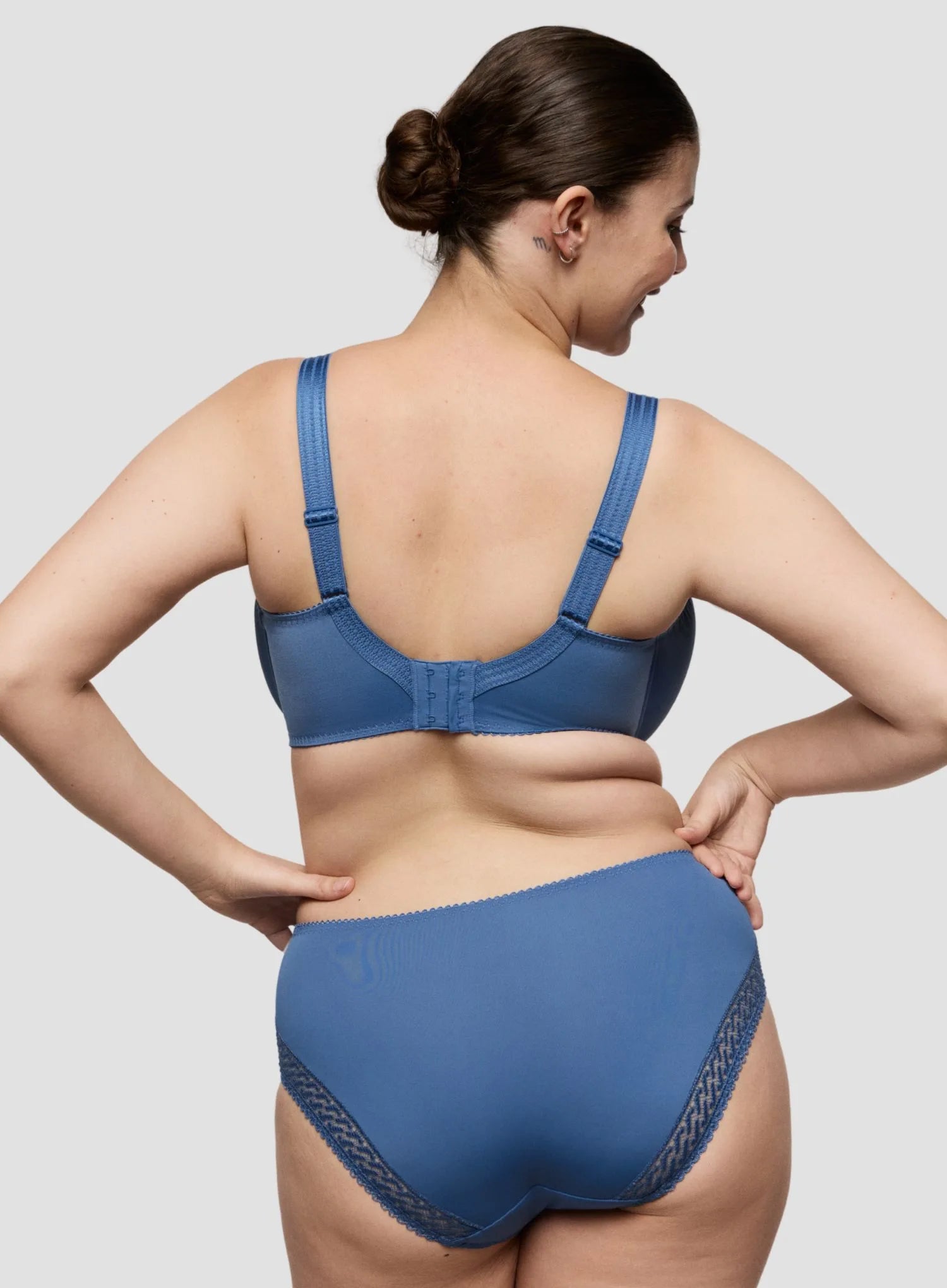 PRIMADONNA Montara Full Brief in Regatta is designed to complement the Montara bra with effortless comfort and understated style. The soft, smooth fabric feels luxurious against the skin, while the high-waist fit and full coverage provide a secure, flattering shape. Subtle embroidered lace detailing adds visual interest without compromising wearability, sitting smoothly under clothing for a clean finish. Ideal for everyday wear, this brief offers confidence, comfort, and a modern look in a versatile denim-inspired tone.