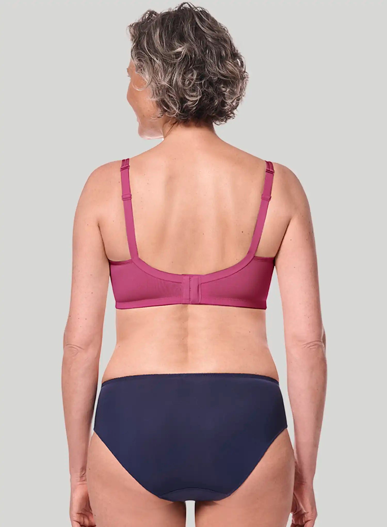 AMOENA Mara Soft Cup Padded Mastectomy Bra in Magenta is the ultimate everyday wire-free bra, blending comfort, style and secure support. Designed with moulded foam cups and breathable, moisture-wicking pockets, Mara creates a smooth silhouette while holding a breast form or enhancer discreetly in place.