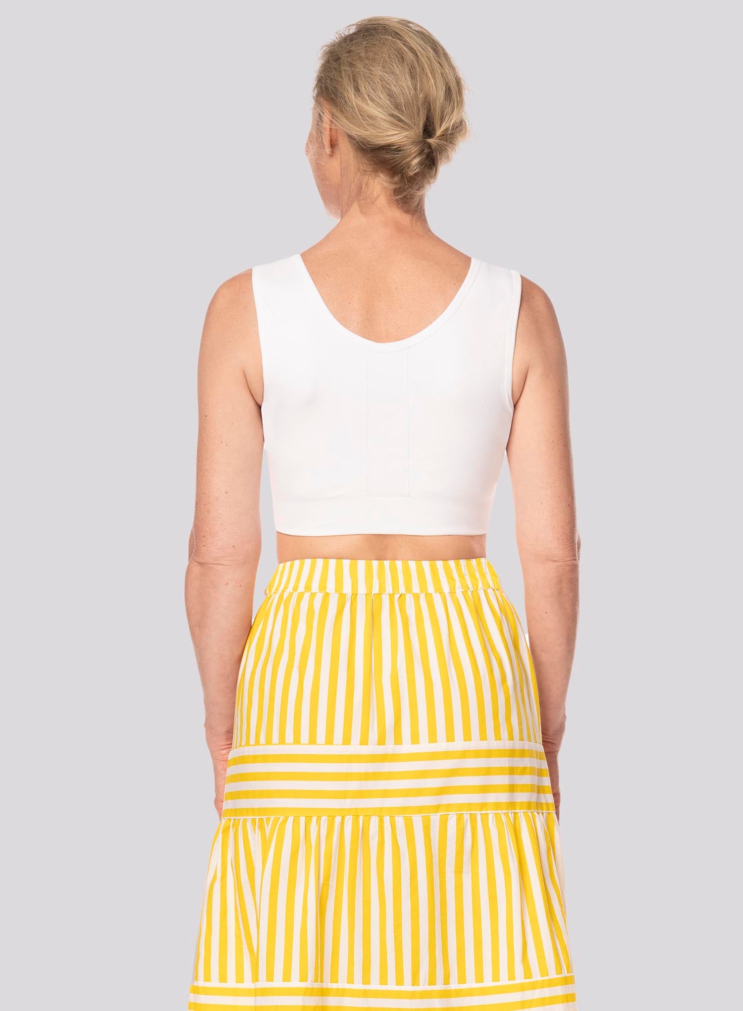 AMOENA Sina Post-Surgery Seamless Compression Bra White is a medium-compression solution designed for immediate post-surgical care. Pre-washed and clinically packaged, it combines hygiene with convenience. Seamless technology and anatomically shaped, stretchable material ensure an accurate, adaptive fit tailored to individual breast shapes and sizes. Special knitting zones provide targeted support for immobilization and stabilization, while the hook-and-eye front closure allows for effortless dressing and surgical site access. Adjustable wide straps and compatibility with a compression belt make the Sina Bra an essential recovery companion, offering optimal comfort and reliable compression.