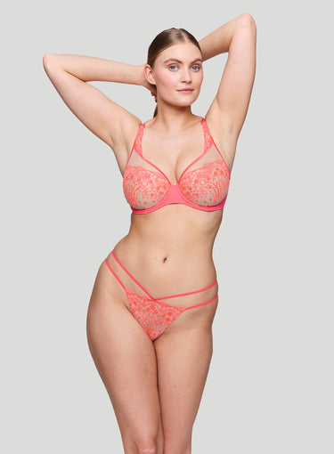 PRIMADONNA TWIST Angelou Mini Thong Juicy Melon is sexy lingerie made both wearable and comfortable. This completely new look for PrimaDonna Twist embodies the young at heart, with styles that are feather light, edgy and fun. Transparent embroidery featuring eye-catching neon bouquets, cut-outs and decorative straps create a stunning silhouette. This mini thong gives a streamlined, super sexy look, featuring transparent embroidered panels and decorative straps that enhance and flatter the waistline.