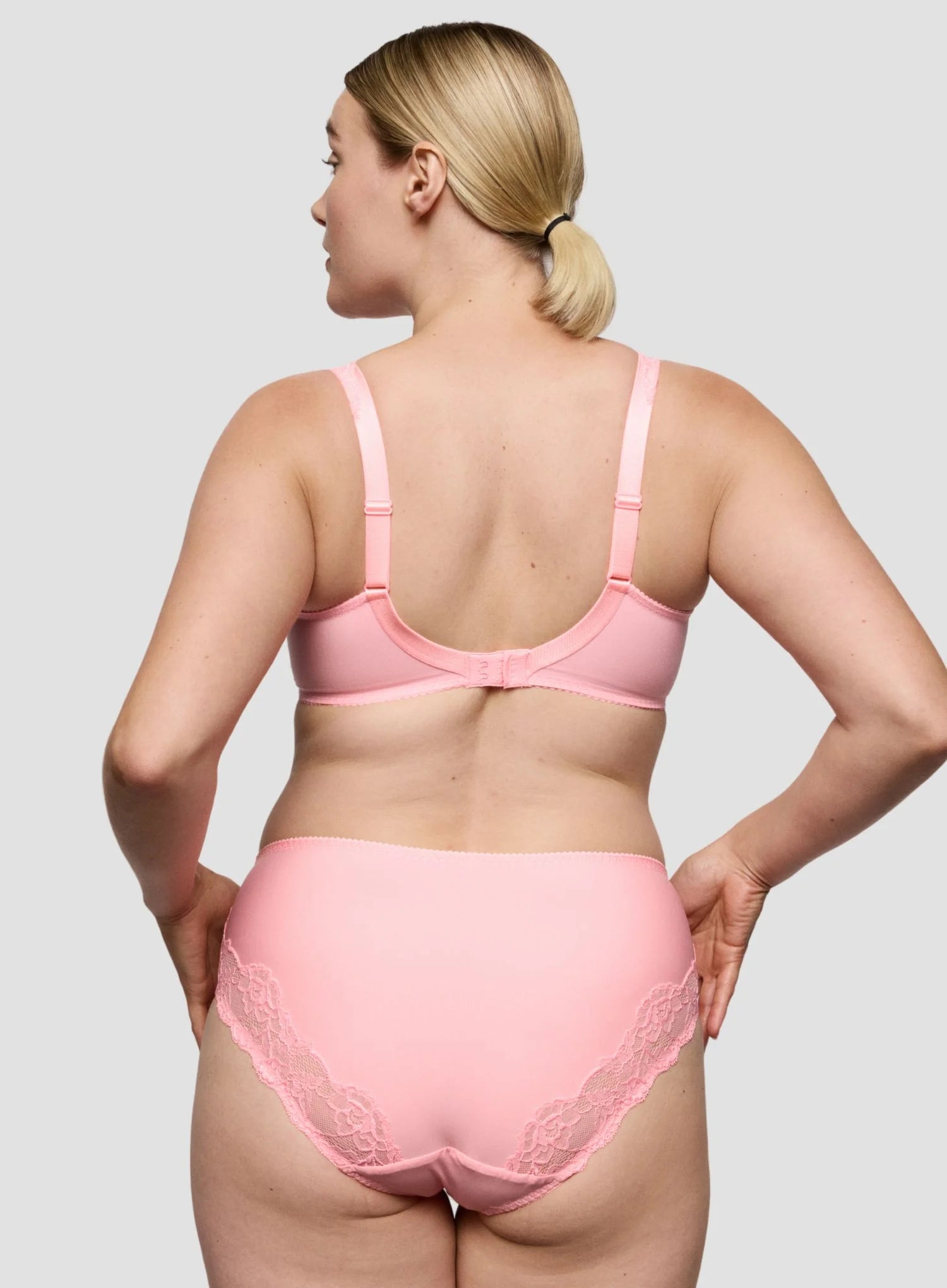 Sheer lace panels along the hips add a soft, feminine touch without compromising comfort. Finished in a pale pink parfait shade, this brief pairs perfectly with the Madison bra range, delivering a coordinated look that feels supportive, flattering, and effortlessly wearable.