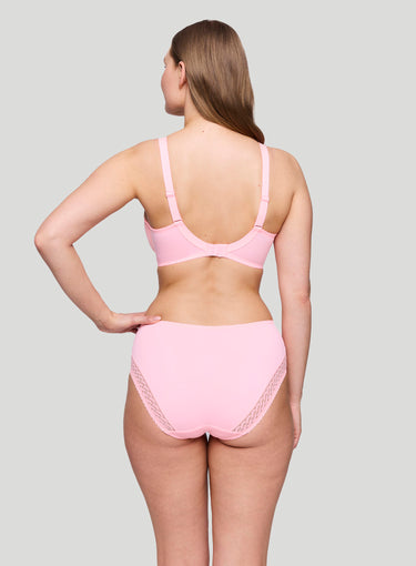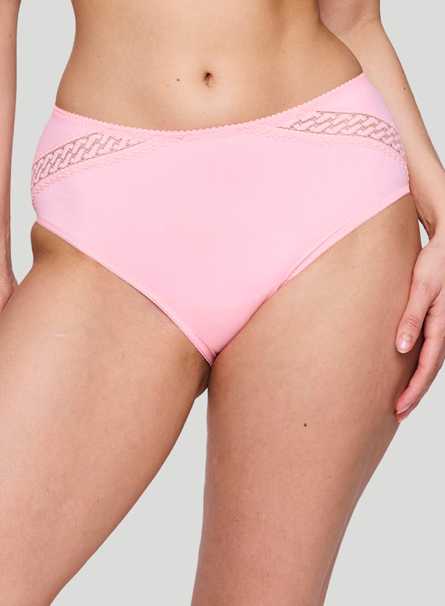 PRIMADONNA Montara Full Brief Pink Parfait is an elegant, flattering high waisted brief that is an absolute everyday must-have. Pink Parfait is a soft, delicate shade of pink with a hint of blush that exudes femininity and elegance. Designed with smooth fabric and a soft and feminine front lace panel that gently makes its way to the back.