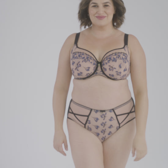 SAMANTA LINGERIE Layla Midi Brief in Tanzanite is our newest luxury collection, inspired by a vision of flowers under a starry sky. Crafted from recycled elastic tulle, the high weight and elasticity of tulle prevents excessive stretching and promotes longevity. Decorated with Polish embroidery at the back, this style remains totally seamless underneath clothing.