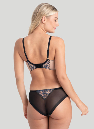 SAMANTA LINGERIE Layla Thong in Tanzanite is our newest luxury collection, inspired by a vision of flowers under a starry sky. Crafted from recycled elastic tulle, the high weight and elasticity of tulle prevents excessive stretching and promotes longevity. Decorated with Polish embroidery at the back, this style remains totally seamless underneath clothing.
