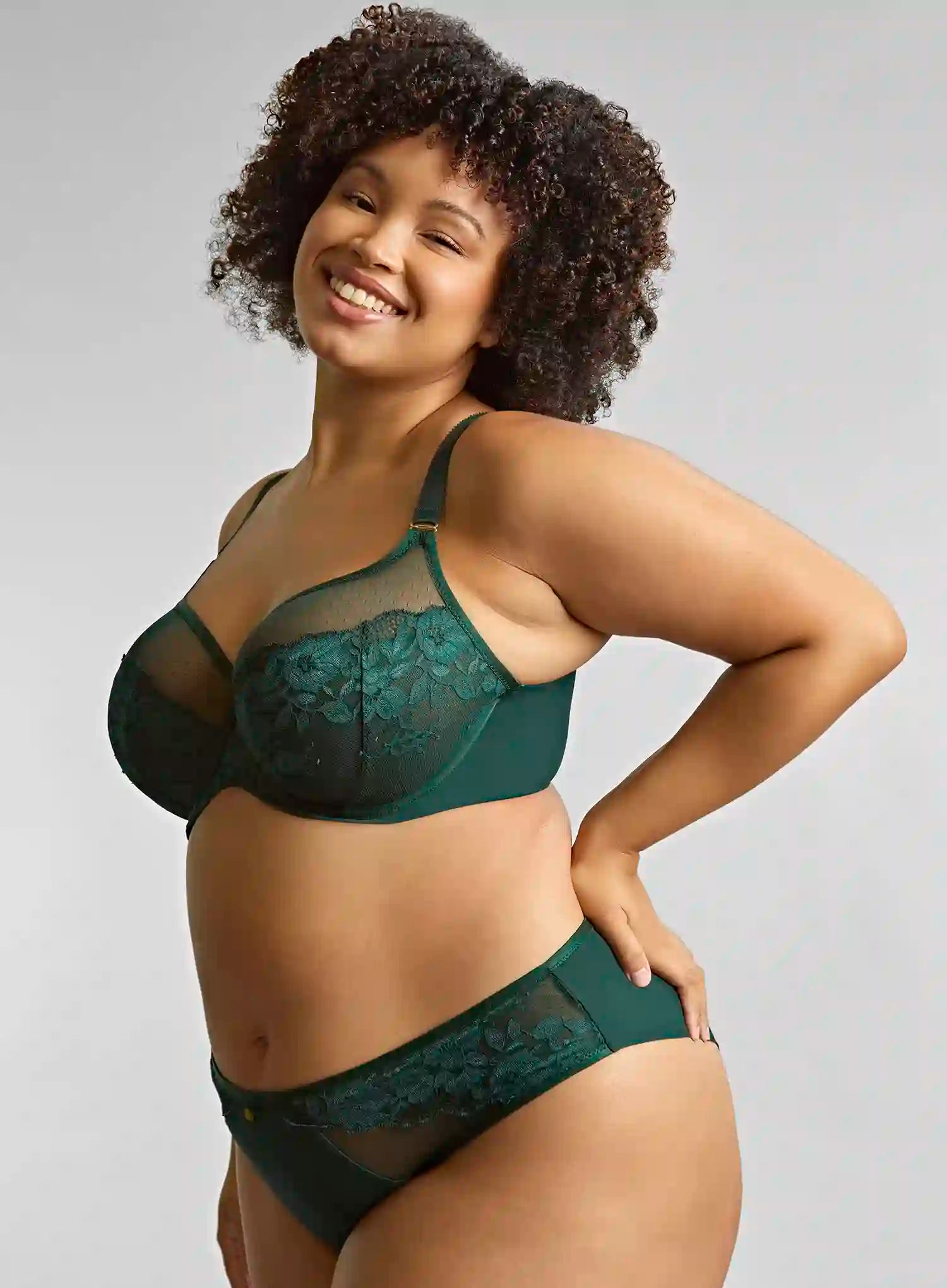 SCULPTRESSE Josephine High Leg Brief in Forest Green is the perfect partner to the matching full cup bra, combining everyday comfort with elevated design details. The mid-rise fit and soft stretch mesh provide gentle coverage while maintaining a smooth, second-skin feel.