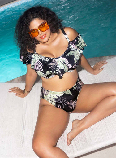 Elomi Swim: Tropical Retreat Underwired Ruffle Bikini Top Black