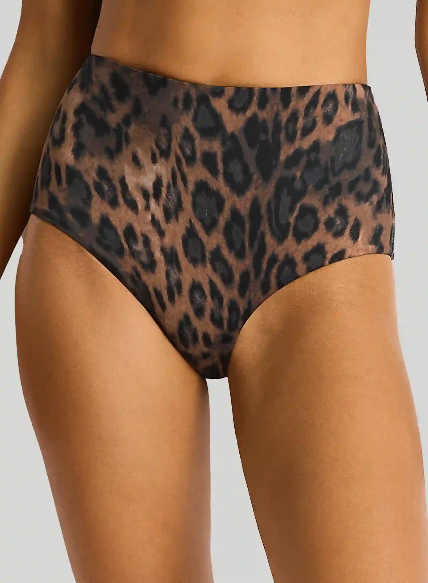SEA LEVEL Savanna High Waist Pant in Chocolate redefines retro glamour with a modern edge. Designed in a rich cocoa leopard print, this high-waisted style offers a smooth, flattering fit across the tummy thanks to powermesh lining at the front and back. The higher rise and regular leg line make it comfortable and easy to wear for all-day confidence.