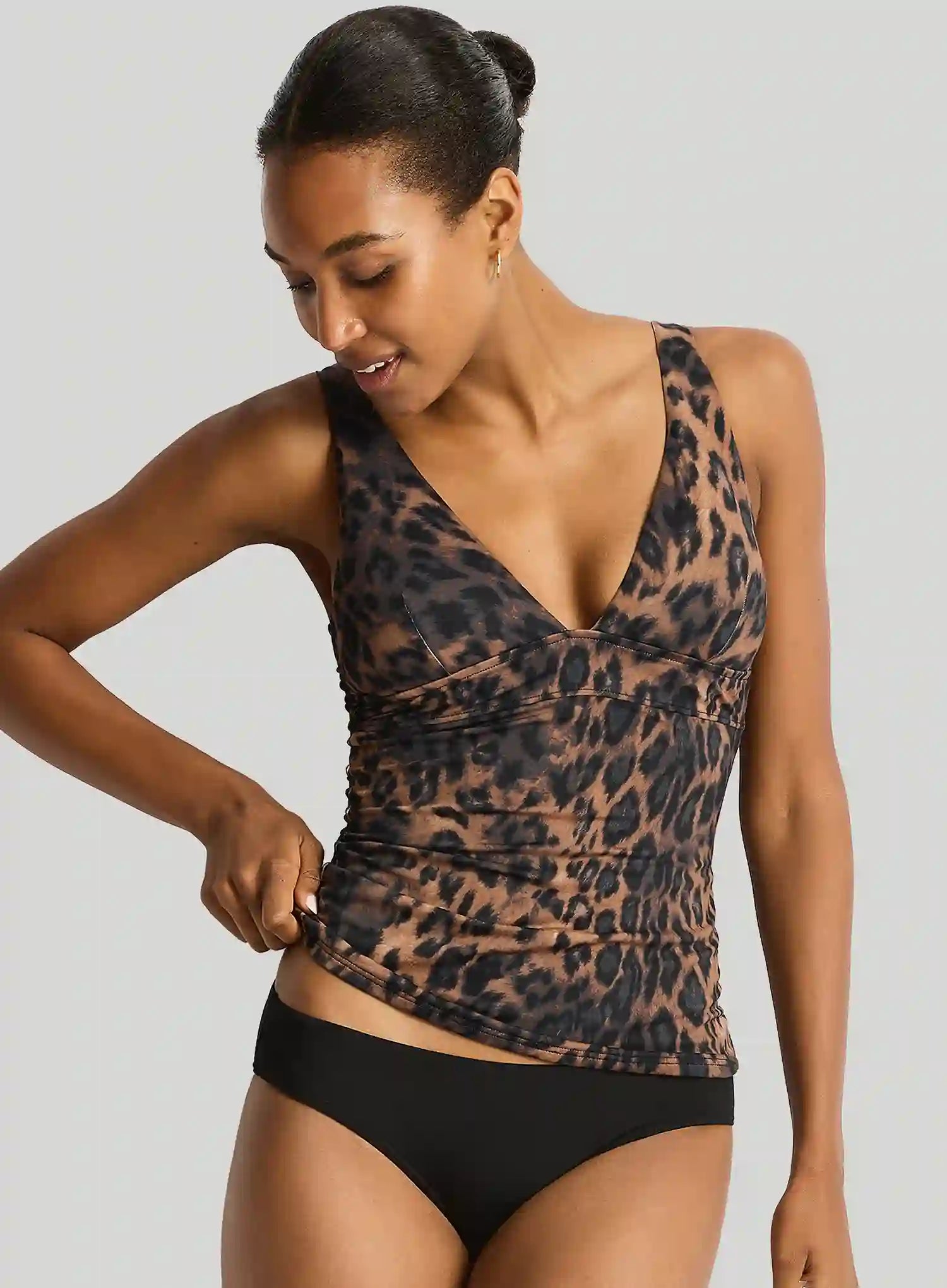 Crafted in Eco recycled fabric with powermesh support, this tankini smooths the front and offers wirefree comfort you’ll love. Removable cups allow for personalised shaping. Finished in a rich cocoa leopard print, Savanna transforms a classic style into an elegant essential you’ll reach for summer after summer.