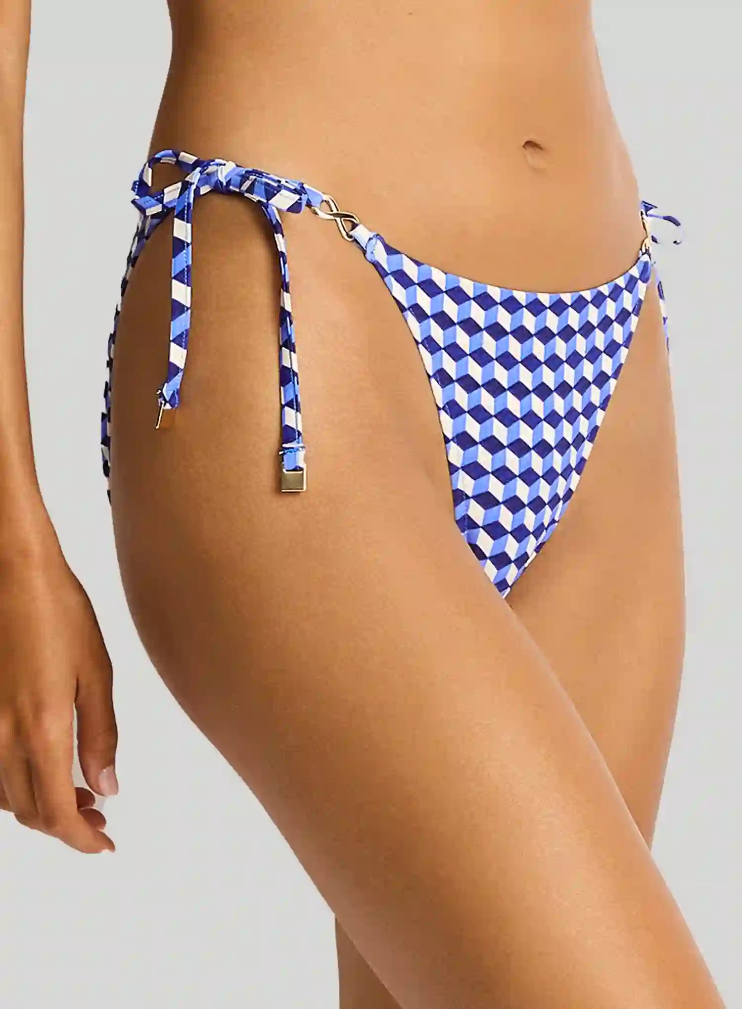 SEA LEVEL Solara Tie Side Pant Blue brings playful charm and timeless design together in one versatile swim brief. Decorated in a bold Amalfi-inspired mosaic print, it features gold hardware details and fully adjustable side ties to perfect your fit.
