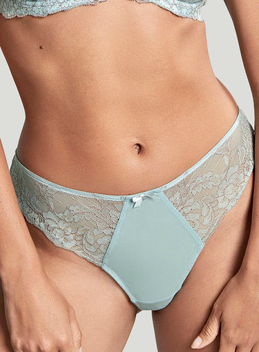 PANACHE Ana Thong in Blue Ash Rose is a new and exciting take on an all-time bestseller, now in a new contrasting colour way that will perfectly complement any Spring wardrobe. Ana features a stretch lace front with a modesty panel and a smooth lace back with a non-visible panty line. Complete your Ana set today., this colour is available for a limited time only.