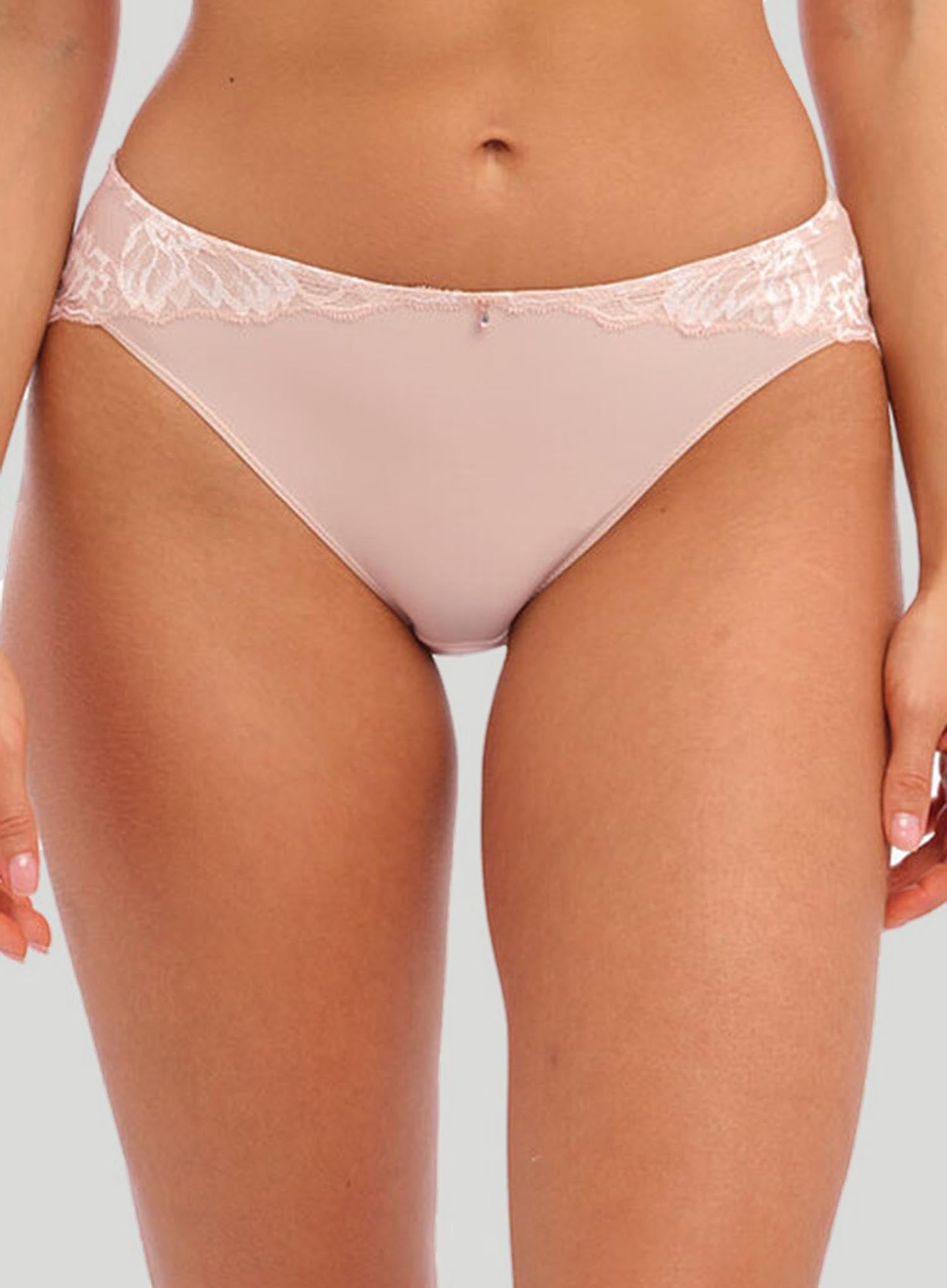 FANTASIE Aubree Brief’s delicate two-tone stretch lace adorns the back leg and front waist with a keyhole lace detail at the centre back. A brief designed with you in mind, made from a soft handle fabric and the finishing touches of a rose gold diamanté teardrop charm at the centre front reflects the uncompromising combination of comfort and beauty.