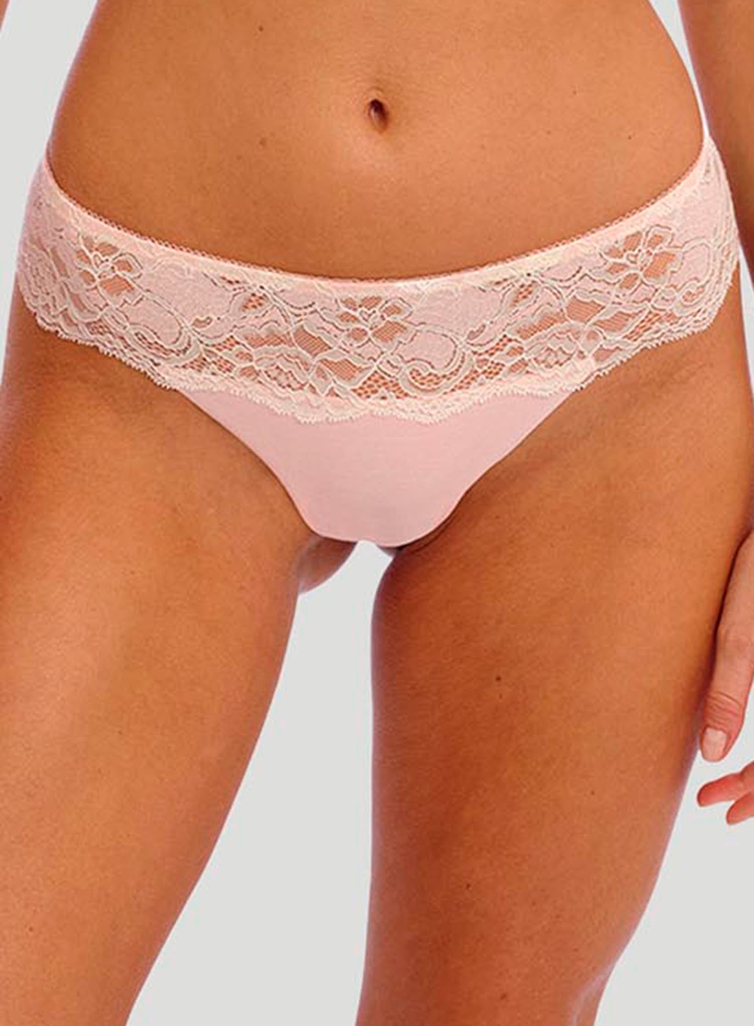 - Full lace waistband with scallop edging