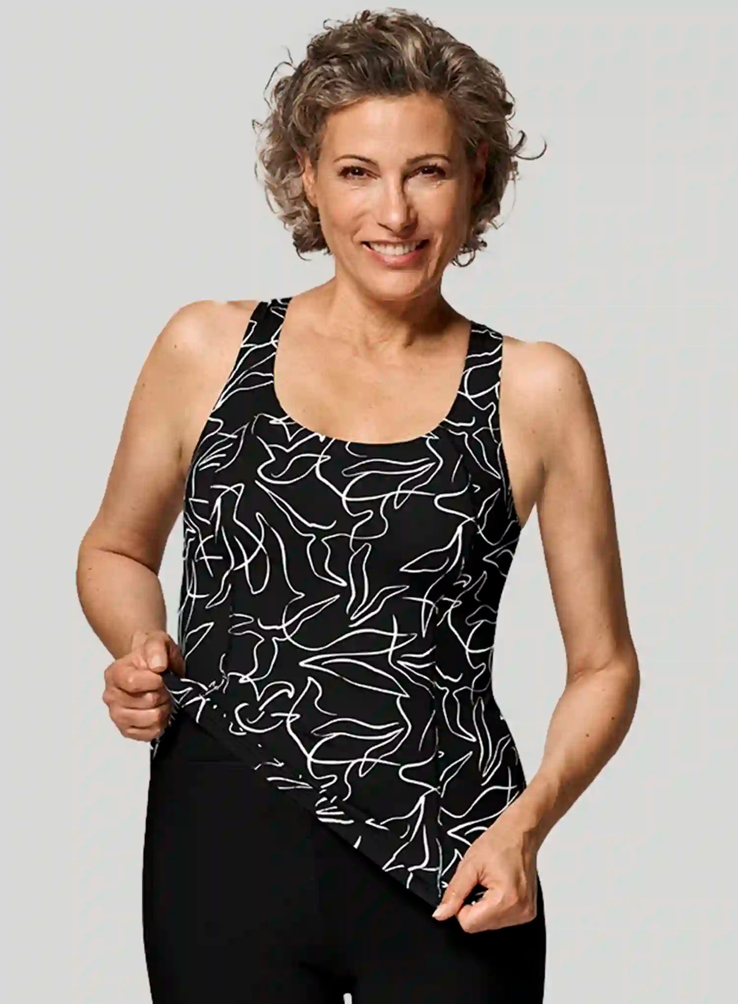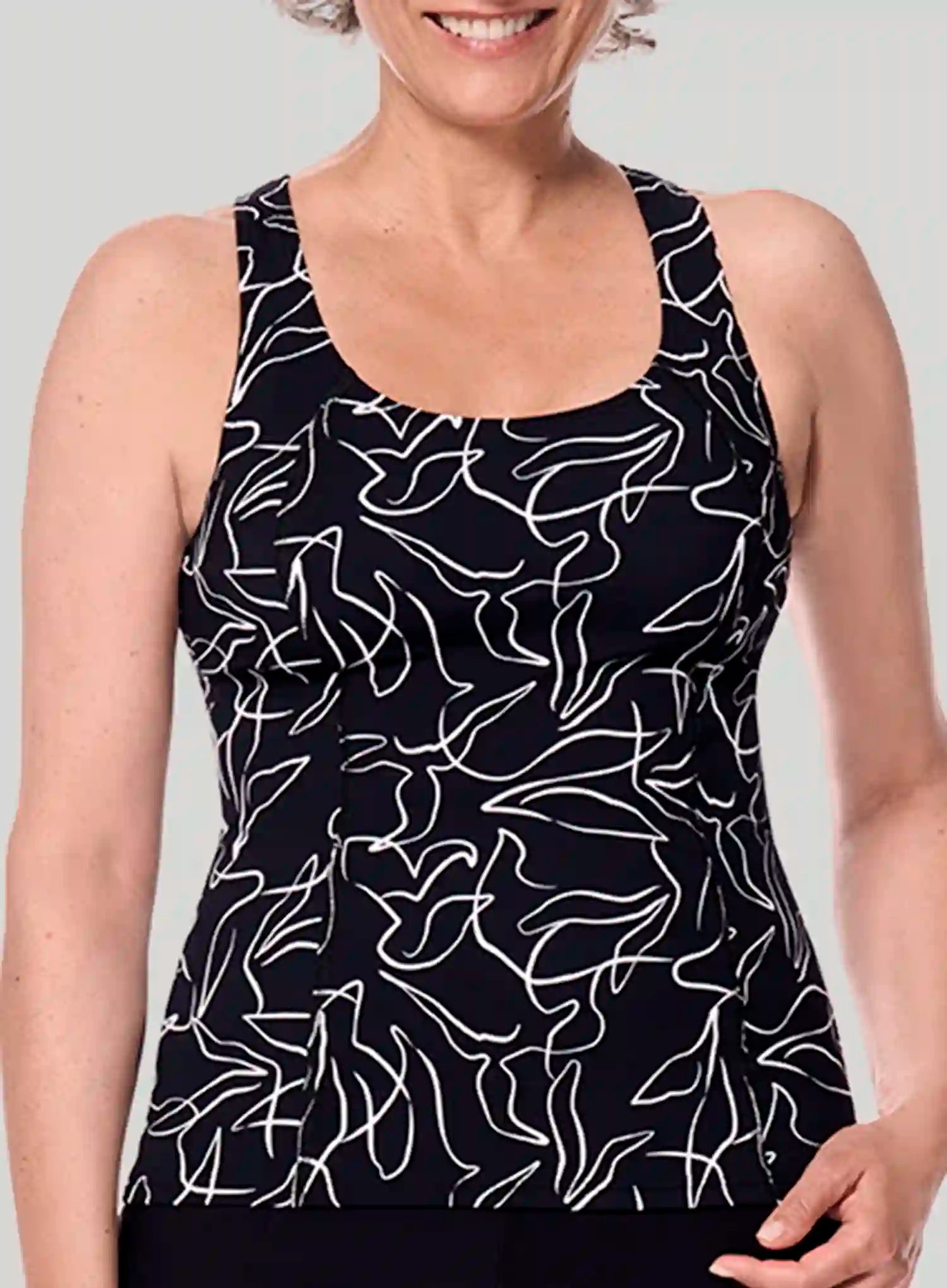 AMOENA Lagos Mastectomy Tankini in Black White offers the perfect blend of support, style and function—specially designed for those managing lymphatic conditions or seeking extra coverage and comfort post-surgery. Ideal for swimming-based recovery and wellness, this high-performance tankini is crafted to help support lymphatic drainage through movement and water pressure.