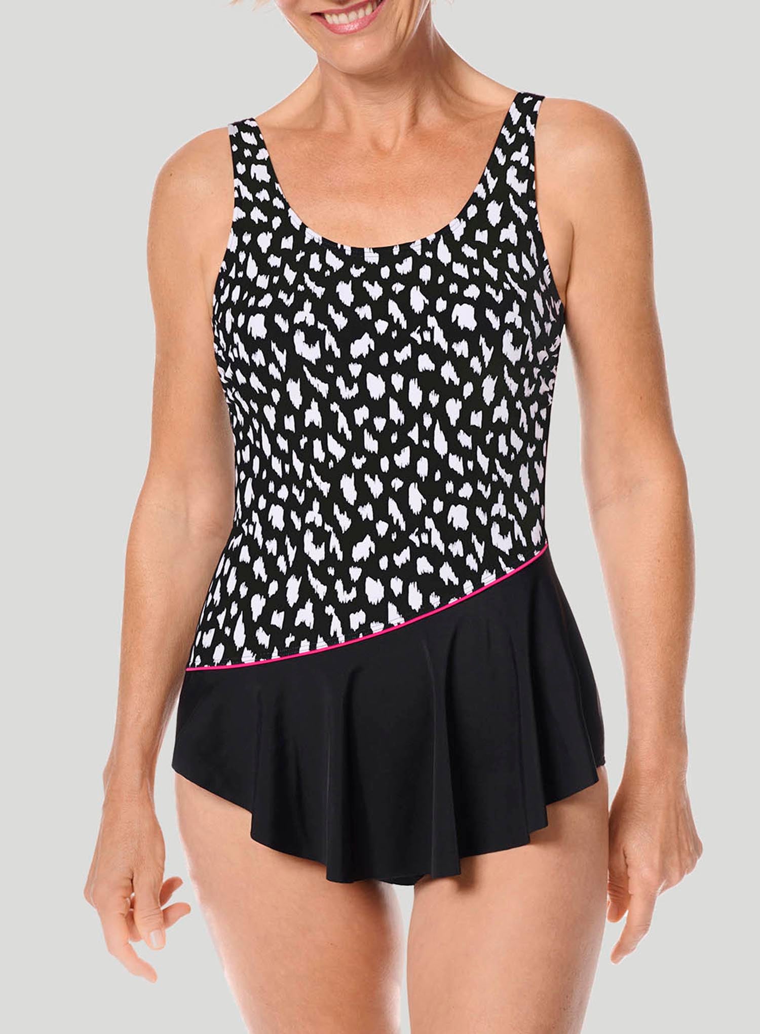 Amoena : Manila Mastectomy Skirted One Piece Black White