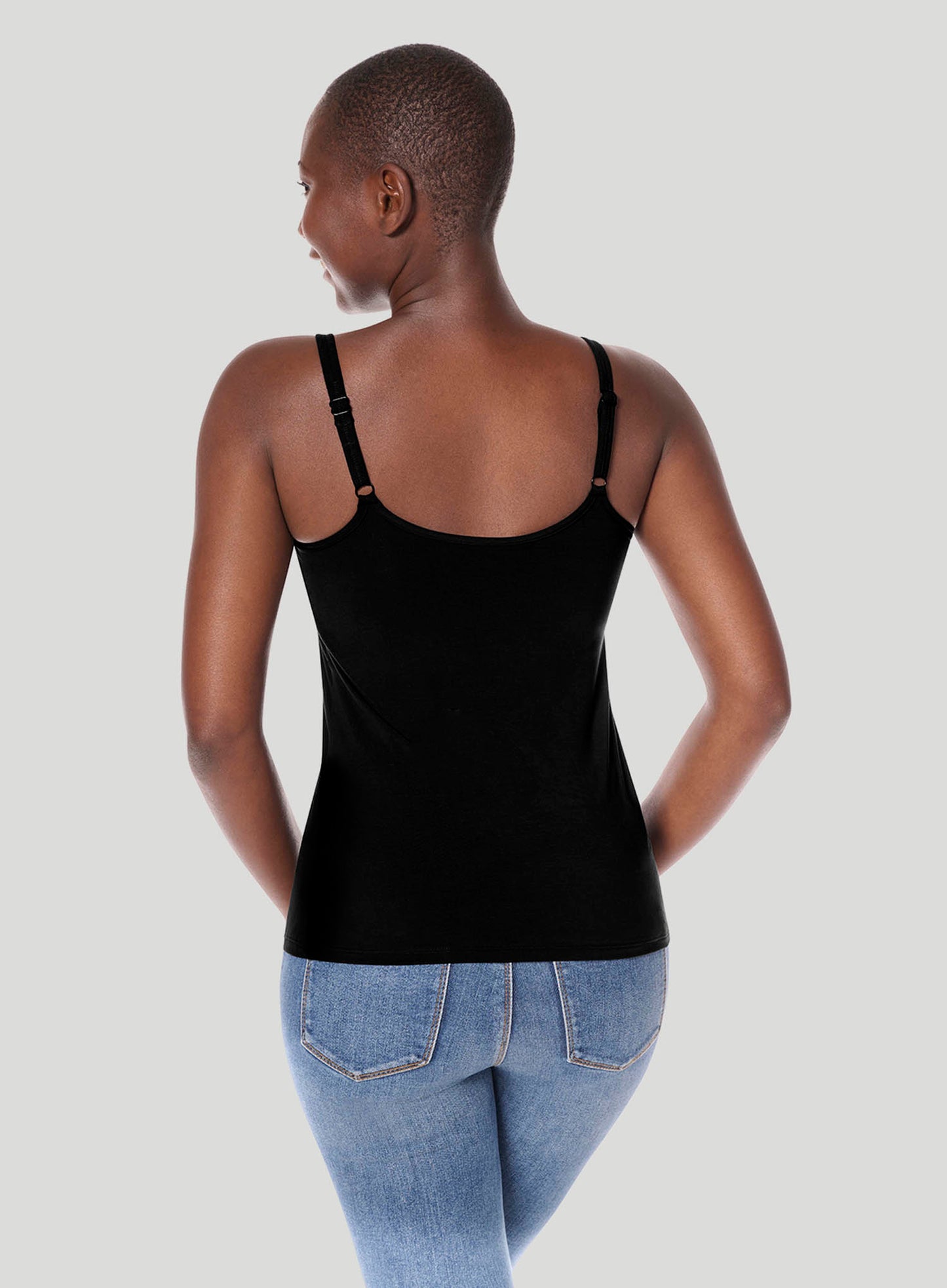 AMOENA Valletta Mastectomy Top Black is designed with your comfort and confidence in mind, offering a gentle, wire-free alternative to traditional bras. This best-selling camisole features an integrated shelf bra with soft modal pockets to securely hold a breast form or partial prosthesis, making it a perfect choice for post-surgery wear. Now enhanced with Amoena Wave Seam Technology, the curved underbust band provides a snug yet soothing fit, helping to prevent shifting for all-day peace of mind. Made from luxuriously soft TENCEL™ Modal x Micro, it feels smooth and gentle against sensitive skin, ideal for day or night. The flattering round neckline and adjustable double spaghetti straps add a touch of elegance, while soft padded cups offer subtle shaping and coverage. Thoughtfully designed for women seeking comfort after surgery, the Valletta Top provides the support you need without compromising on style or ease.