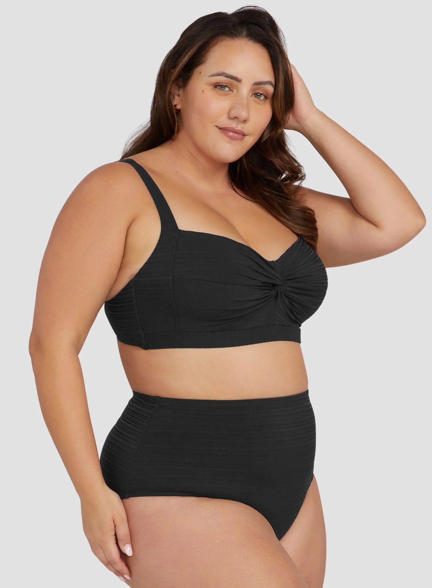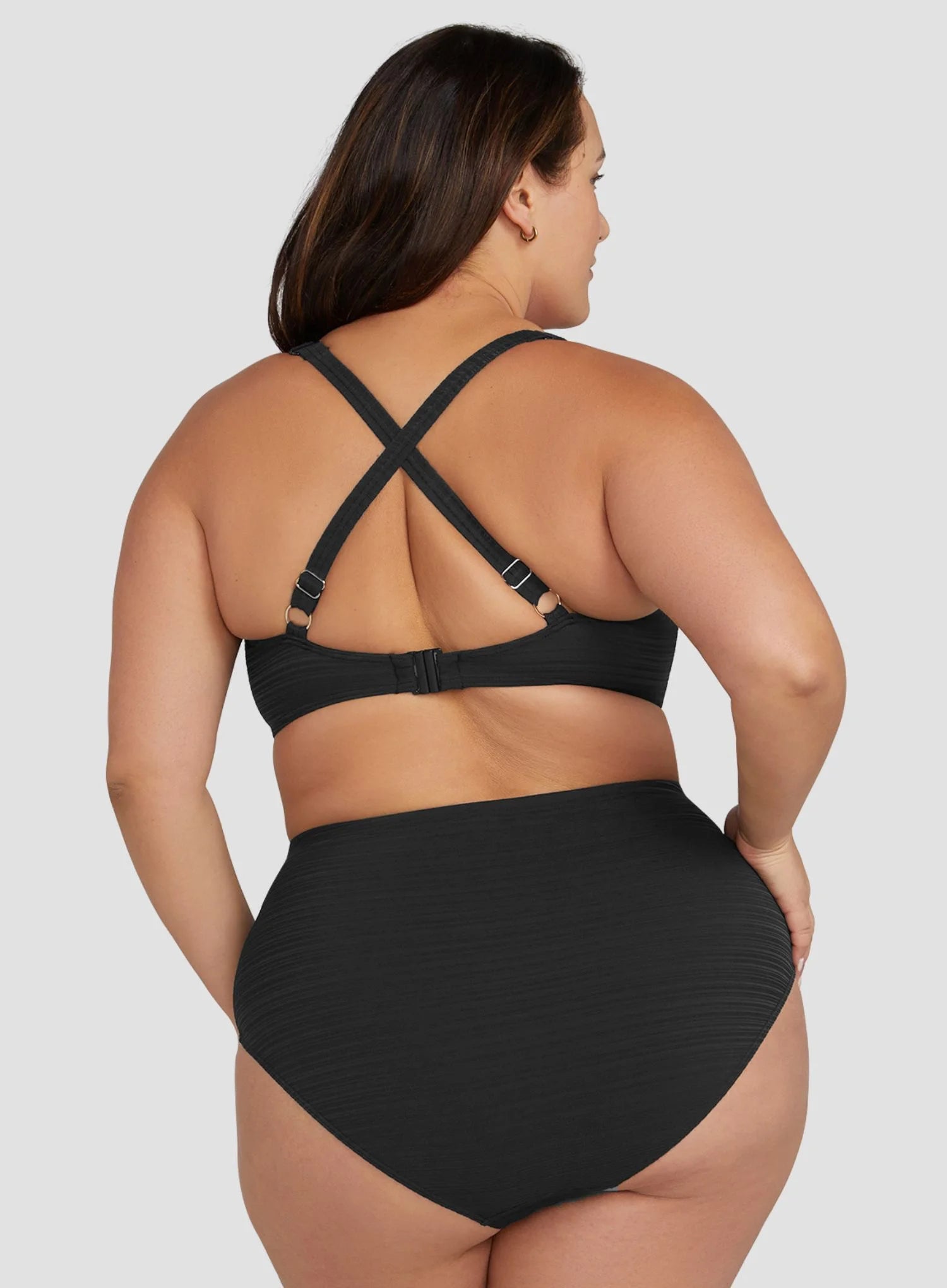 ARTESANDS Aria Renoir High Waist Swim Pant in Black combines sleek design with flattering coverage. The high waist smooths the midriff, enhancing curves while providing moderate rear coverage. Crafted without panel lines, the pants create a clean, sculpted silhouette that pairs perfectly with the Aria bikini tops.