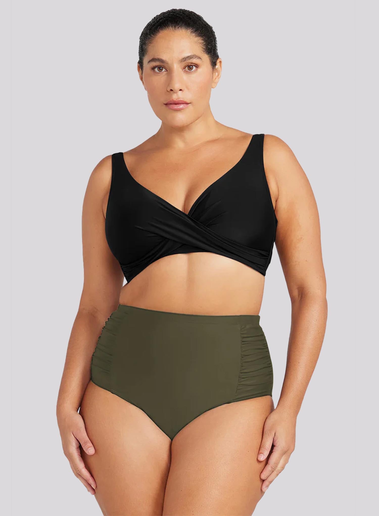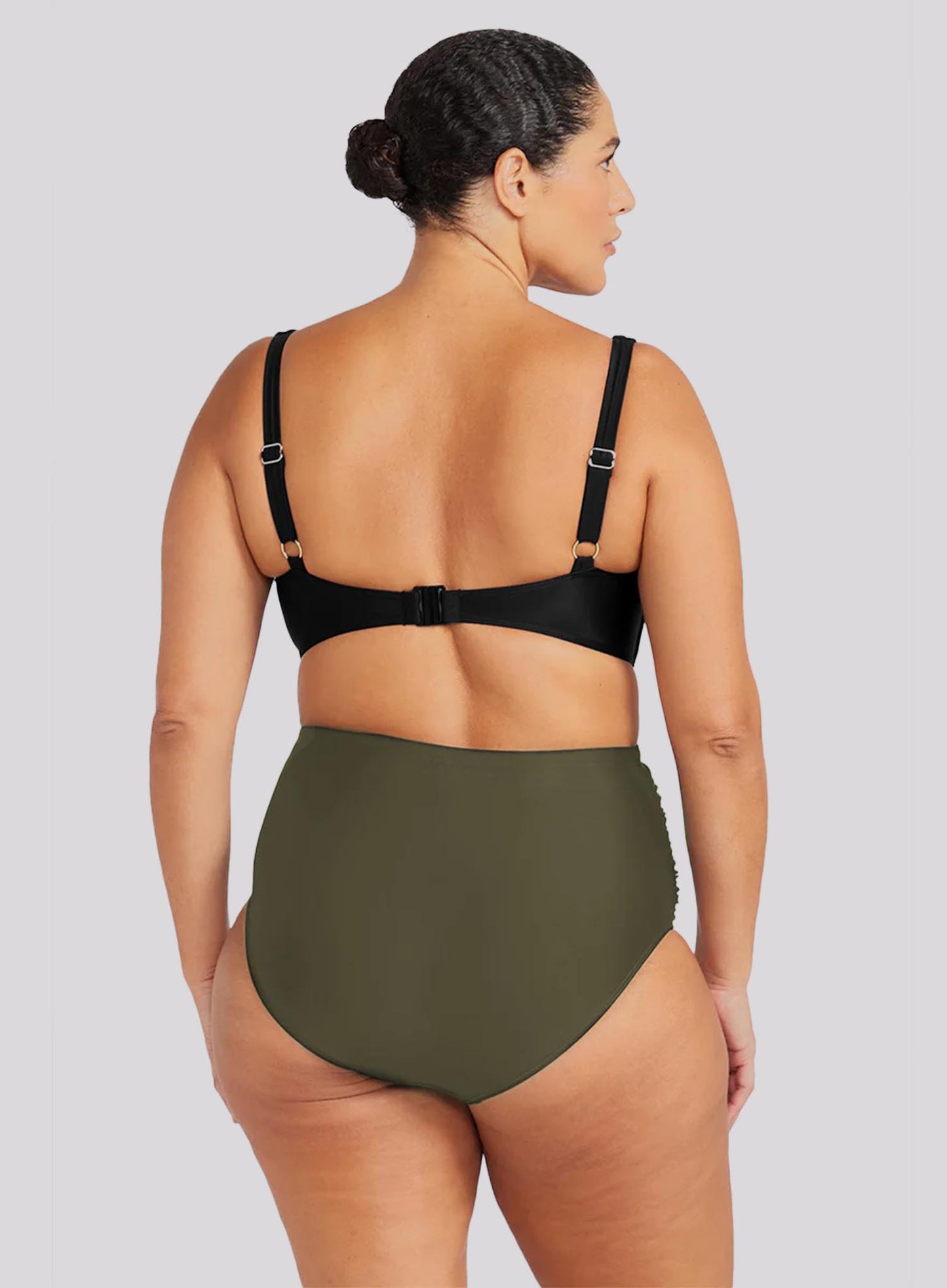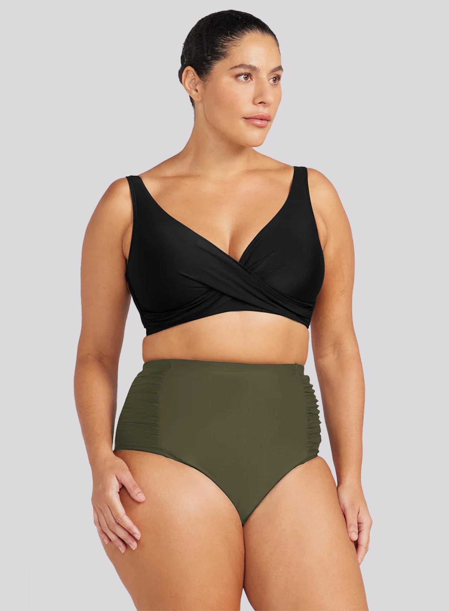 ARTESANDS Hues Botticelli High Waist Swim Pant in Olive is designed to embrace your curves with both comfort and style. This high-waisted swim pant is crafted with 360-degree powermesh lining, offering body-sculpting confidence and moderate bottom coverage. The ruched side panels enhance your silhouette, providing a flattering fit that hugs your curves beautifully. Made from soft-touch, high-stretch swim fabric, the Botticelli pant not only feels luxurious but also offers the support you need for a confident swimwear look. Whether paired with a bikini top or a tankini, these high-waisted swim pants are perfect for creating a chic, curve-fit set.