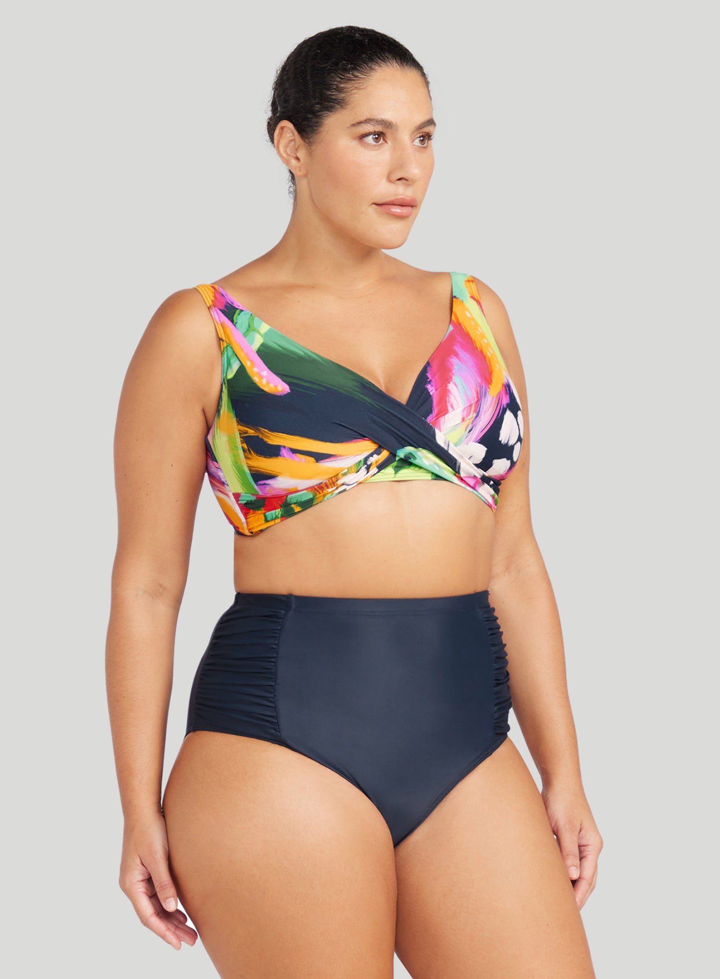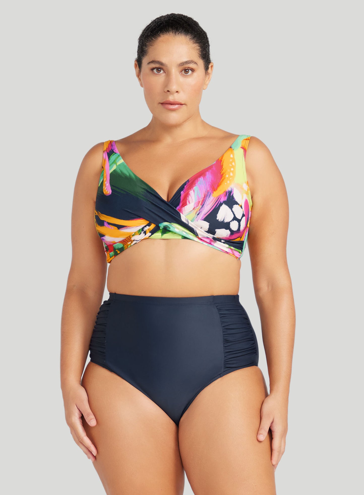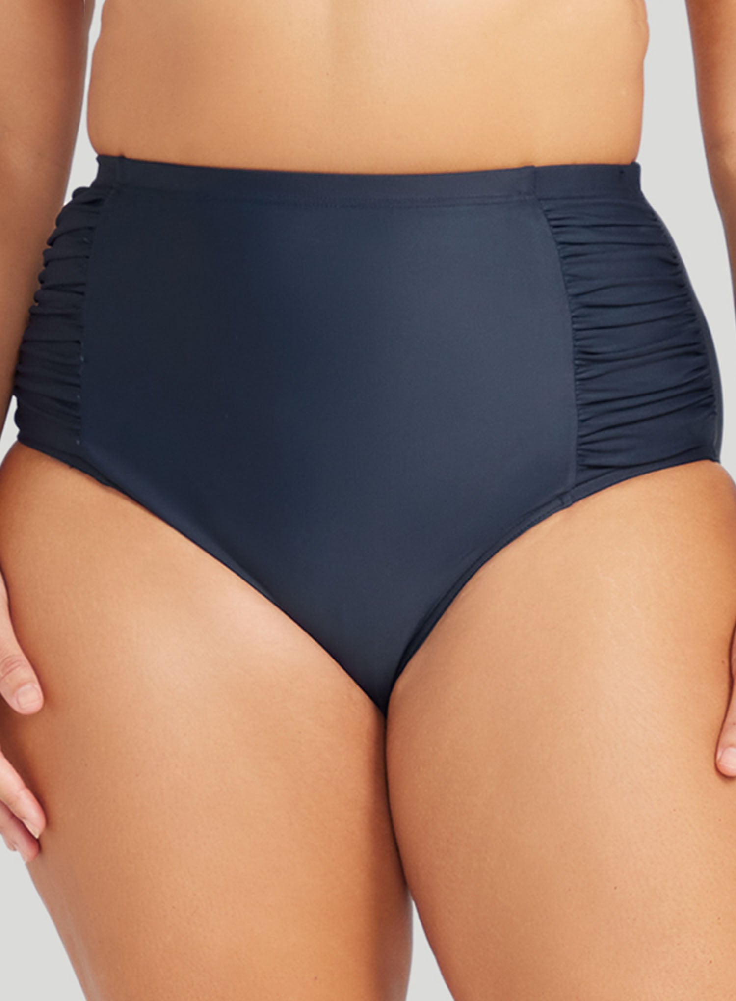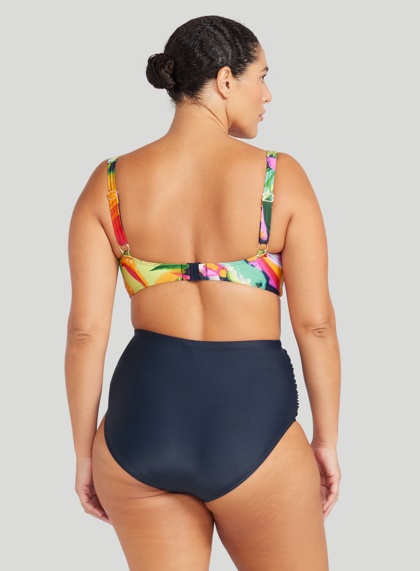 ARTESANDS Hues Botticelli High Waist Swim Pant in Navy is designed to embrace your curves with both comfort and style. This high-waisted swim pant is crafted with 360-degree powermesh lining, offering body-sculpting confidence and moderate bottom coverage. The ruched side panels enhance your silhouette, providing a flattering fit that hugs your curves beautifully. Made from soft-touch, high-stretch swim fabric, the Botticelli pant not only feels luxurious but also offers the support you need for a confident swimwear look. Whether paired with a bikini top or a tankini, these high-waisted swim pants are perfect for creating a chic, curve-fit set.
